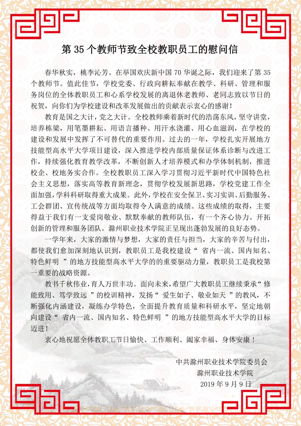 第35个教师节致全校教职员工的慰问信