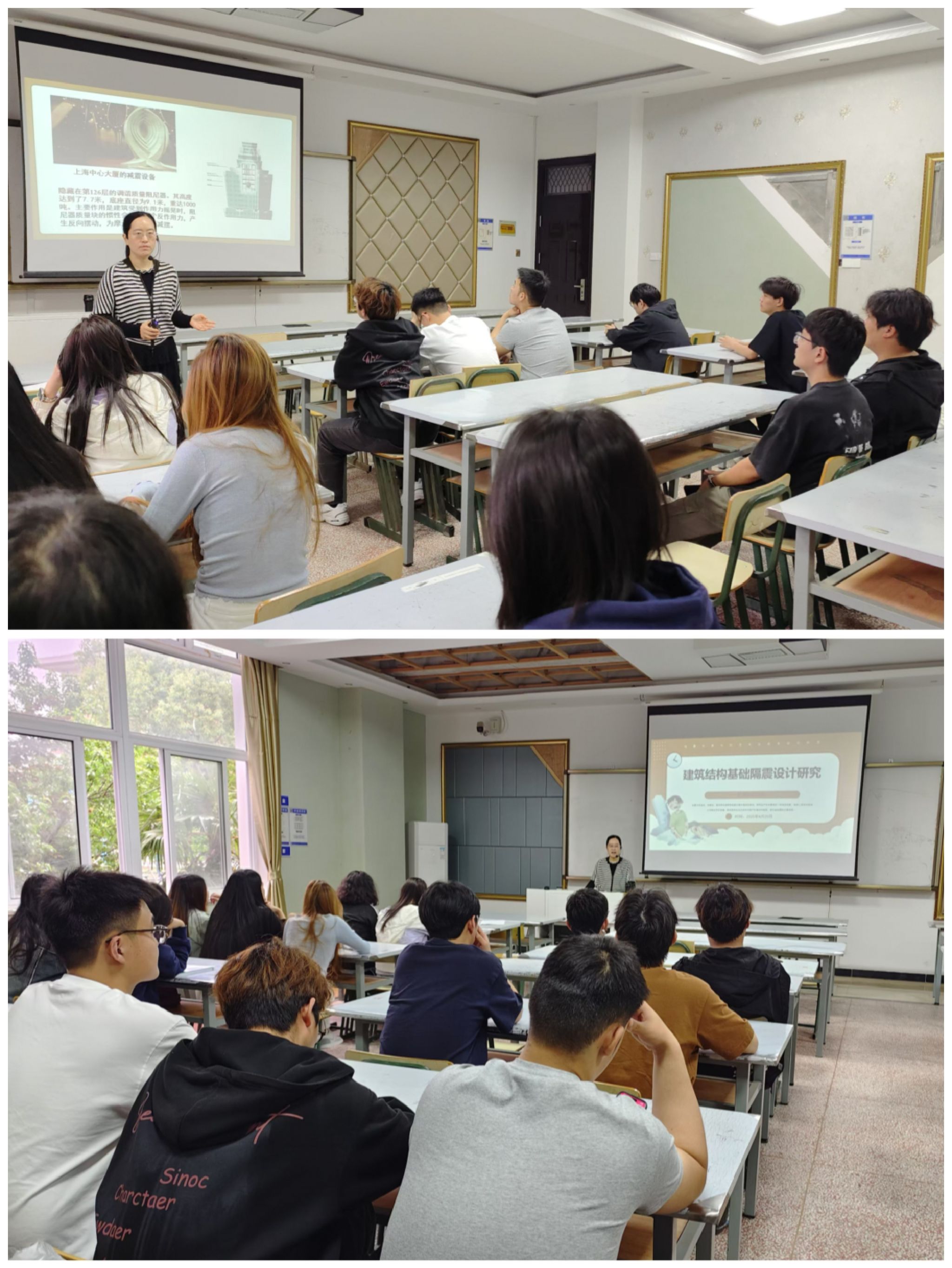 4月25日上午,建筑工程学院林秋怡副教授在建筑技术综合实训管JG102教室,开展了题为“建筑结构基础隔震设计研究”的讲座,学生一起探讨了隔震结构分析与设计,建筑工程学院相关专业学生听取了讲座。