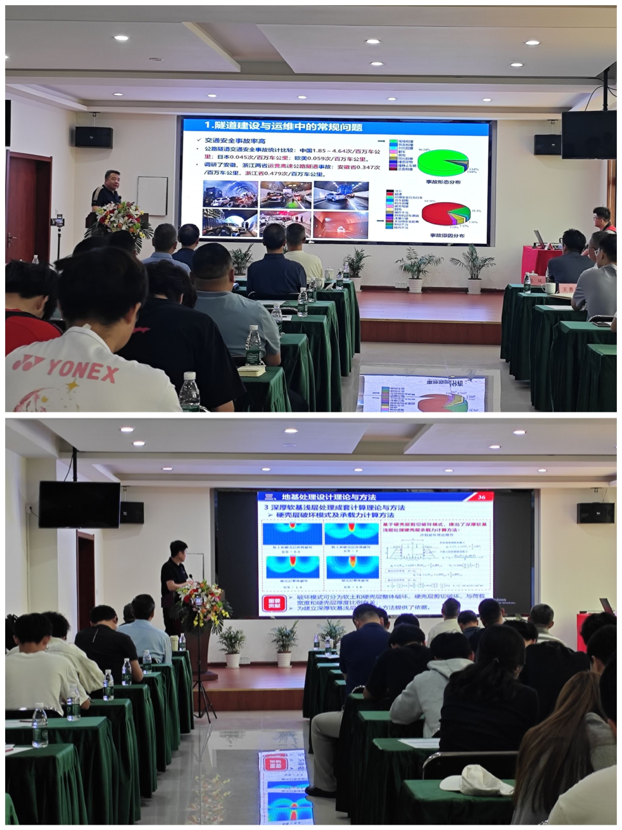 大讲堂上,专家们围绕主题展开了深入探讨。其中,“公路隧道绿色建造与安全运维创新技术”的主讲人冯守中博士详细阐述了在隧道建设过程中,如何采用创新技术实现绿色环保目标。例如,介绍了新型的隧道衬砌智能养护台车,该设备不仅能够对隧道衬砌进行精准的加温、保温和加湿、保湿,还能实现养护区域内衬砌温度和湿度的智能控制,显著提高隧道衬砌混凝土的强度和表面致密性,有效解决了传统隧道施工中混凝土强度不足、衬砌开裂等病害问题,且在节能环保方面表现出色。同时,还分享了关于隧道安全运维的前沿技术与实践经验,包括利用物联网、大数据、人工智能等技术构建的智慧集成管控平台,实现了对隧道运行管控、安全管理、养护管理等多方面的高效监控与科学决策,大大提升了隧道的安全性与运维效率。