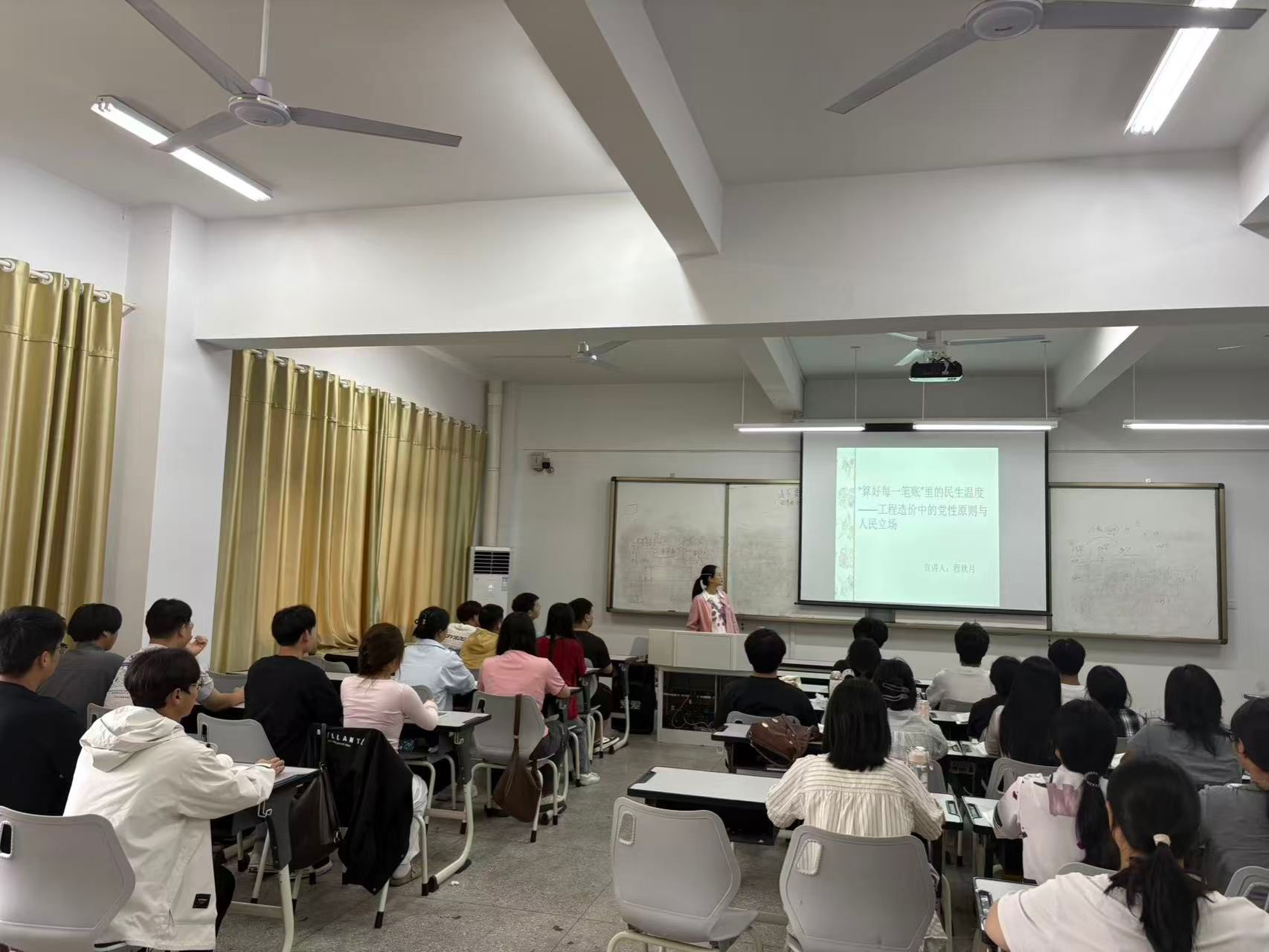 “一个小数点,可能影响百户家庭的冬季取暖;一笔预算,决定着一项民生工程的最终成效。我们算的不仅是数字,更是人心向背!”10月17日下午,建筑工程学院的“专业+政治”双融党课再次开讲。省级教坛新秀程秋月以《“算好每一笔账”里的民生温度——工程造价中的党性原则与人民立场》为题,为众多师生党员上了一堂直击灵魂的“专业信仰课”。