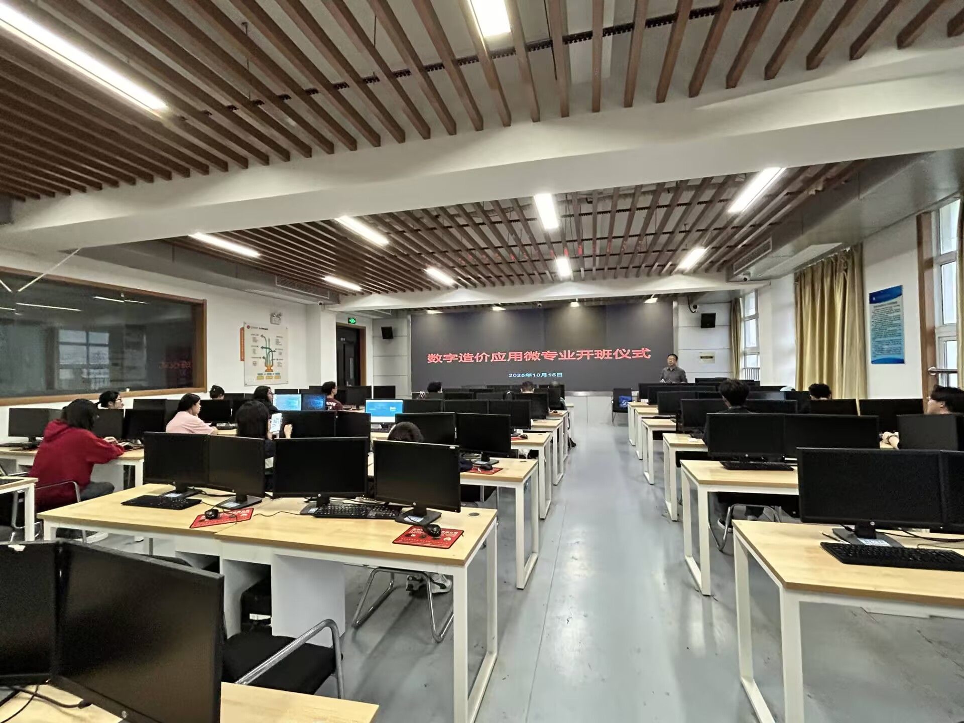 近日,raybat官网建筑工程学院工程造价专业“数字造价应用”微专业开班仪式在建筑技术实训馆306机房隆重举行。该专业旨在主动适应建筑行业数字化转型趋势,培养兼具传统工程造价理论与前沿数字技术应用能力的复合型人才。微专业负责人、授课教师团队及全体录取学生共同参加了开班仪式。