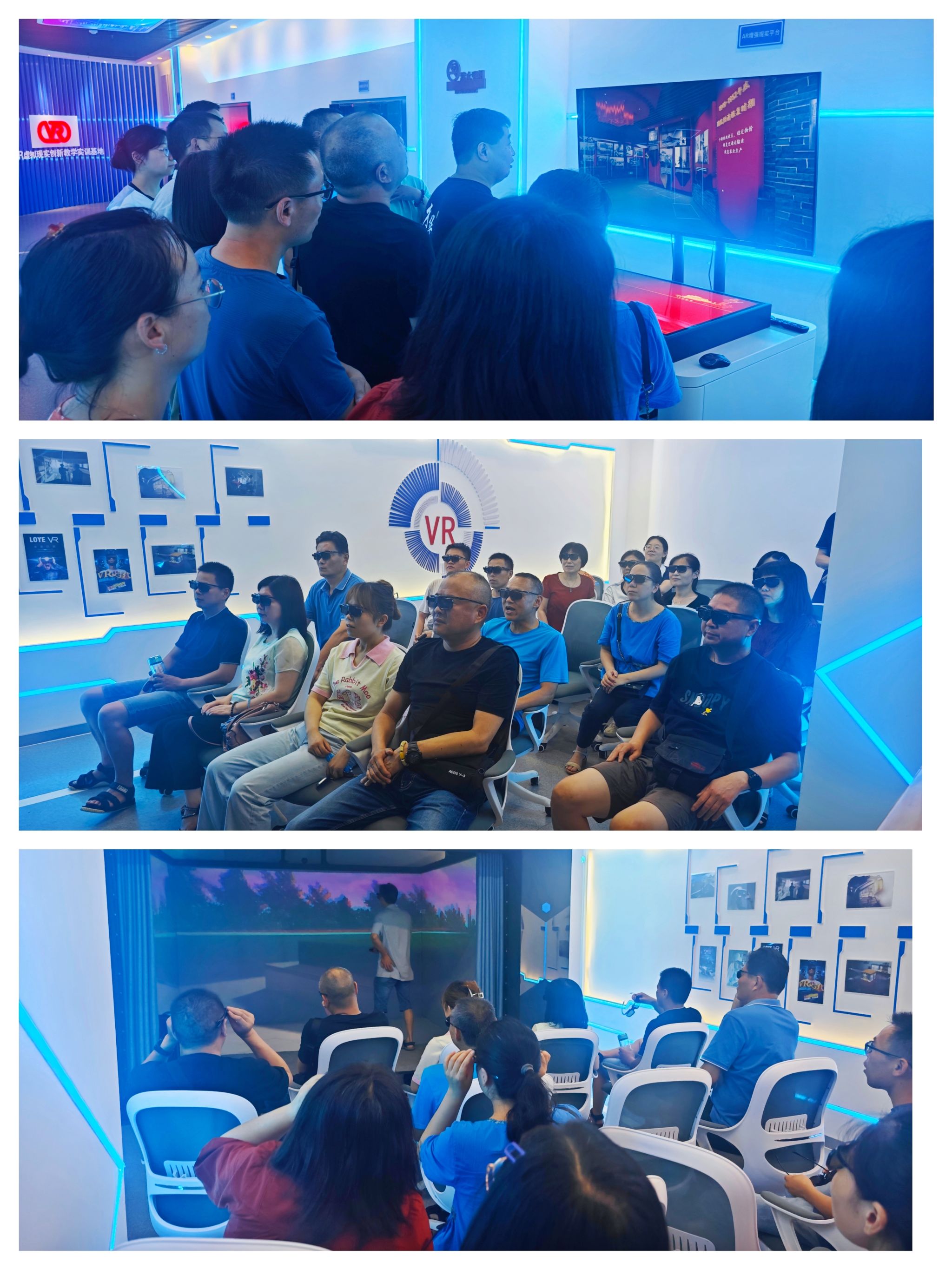 全体党员教师在VR实训中心的AR互动教学区共同学习了党史,在沉浸式教学区通过3D眼镜集中参观了李大钊纪念馆,通过数字化形式重温党史,缅怀先烈。