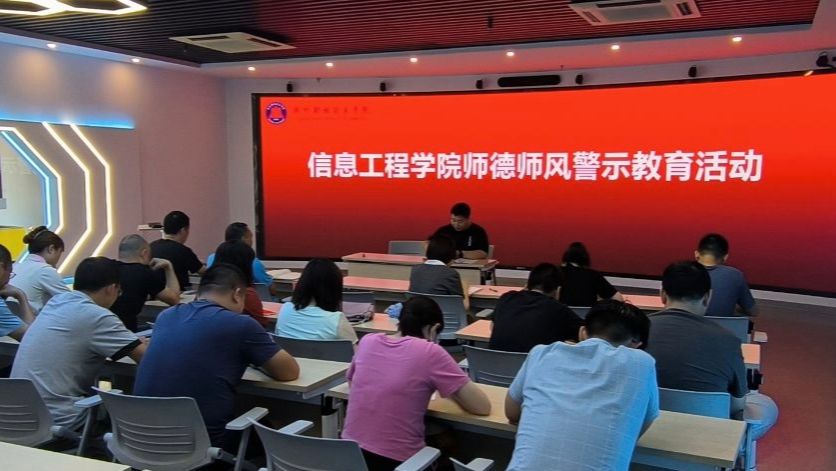 为进一步规范高校教师履职履责行为,落实立德树人根本任务,弘扬新时代高校教师道德风尚,努力建设有理想信念、有道德情操、有扎实学识、有仁爱之心的高校教师队伍,7月7日下午,信息工程学院在VR实训中心开展师德师风警示教育活动。学院党政和全体教职工参加会议。