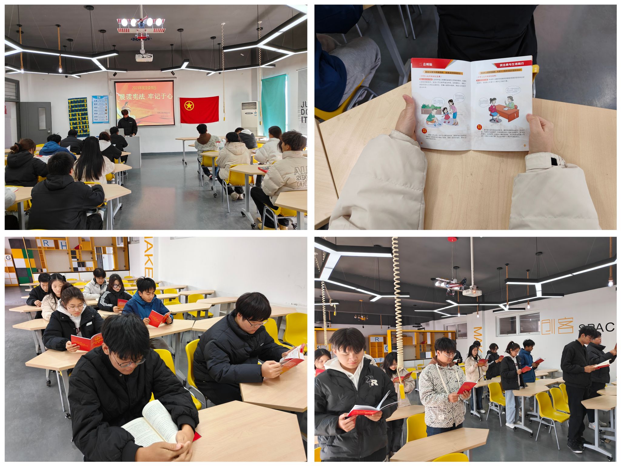 12月4日是第十个国家宪法日。为了深入学习宪法知识,弘扬宪法精神,增强同学们的法治意识,近日,信息工程学院组织各班学生代表在致善楼2604教室开展宪法晨读主题活动。