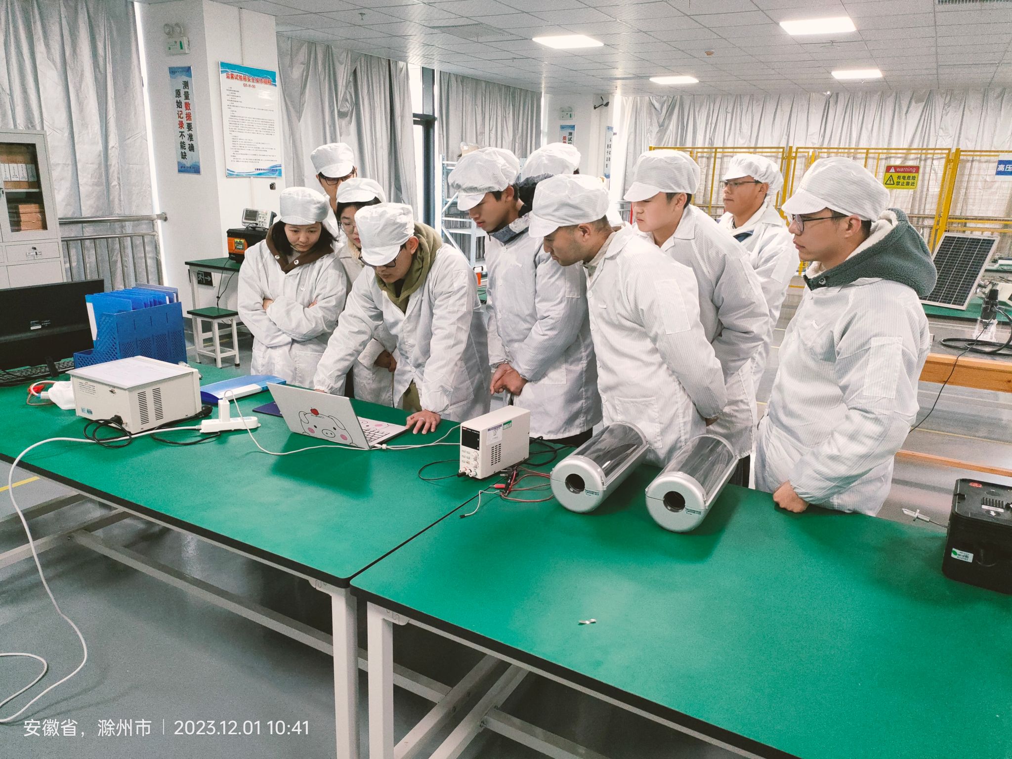 安徽健驰公司总经理严合群为我院物联网应用技术专业产业教授,他亲自指导青年教师和学生,在他的带领下,共同参观企业展厅,了解企业文化,深入学习了电池模块、信息传输模块、远程监测模块等产品信息,并对未来电子信息的行业发展进行了讨论与交流。