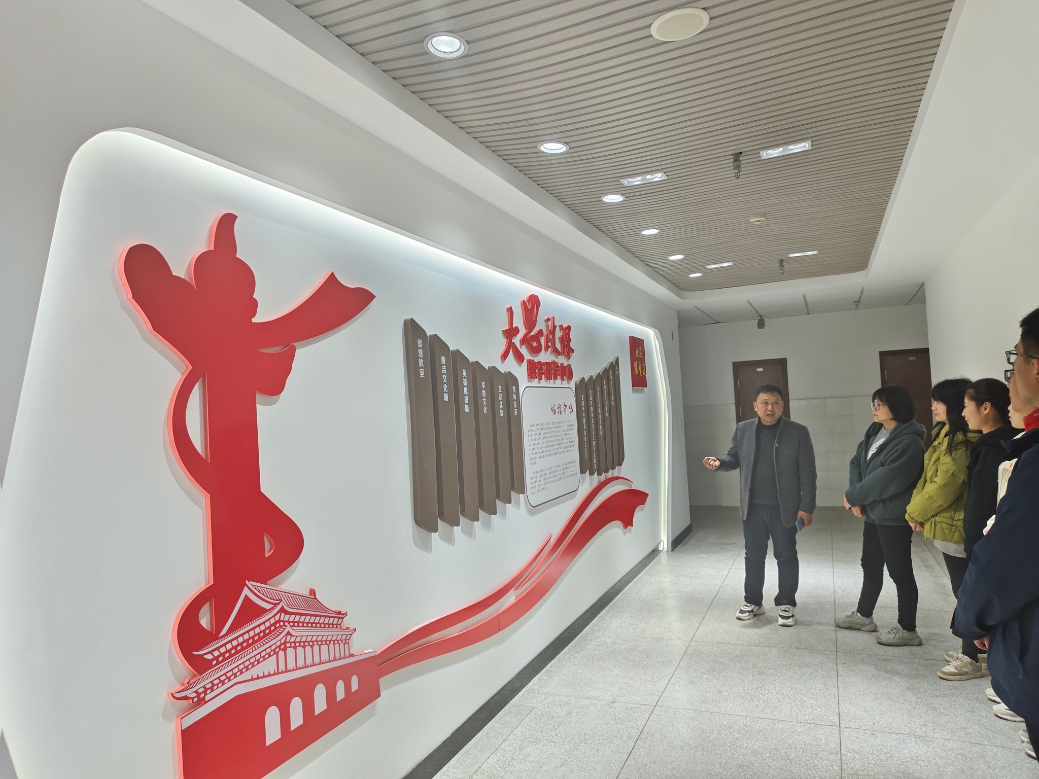 为大力弘扬伟大建党精神,回顾党的光辉历程,3月27日,信息工程学院学生管理联合党支部师生12人在支部书记赵盼盼的带领下,赴学校“大思政课”数字研学中心开展主题党日活动。马克思主义学院党总支书记、院长孔金热情接待。