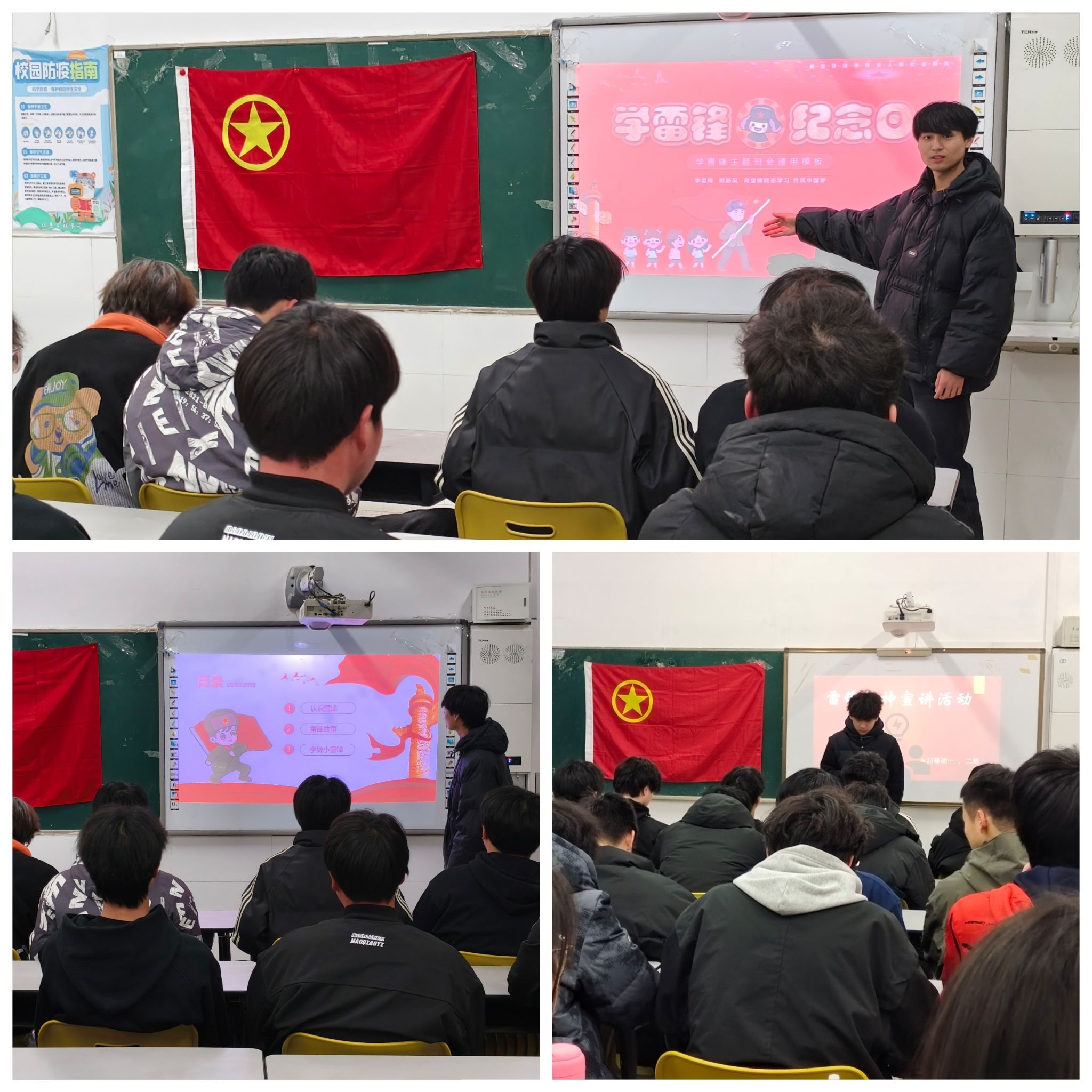 一是学习雷锋精神主题团课。为促进思想道德建设,激扬人们心中蕴藏的美好思想品德,以团支部为单位组织观看雷锋事迹纪录片和阅读雷锋日记,并进行主题讨论,号召同学们将“向雷锋同志学习”落实到行动上。同学们也纷纷表示,要将雷锋精神融入到自己的学习和生活中,从身边的小事做起,贡献自己的力量。