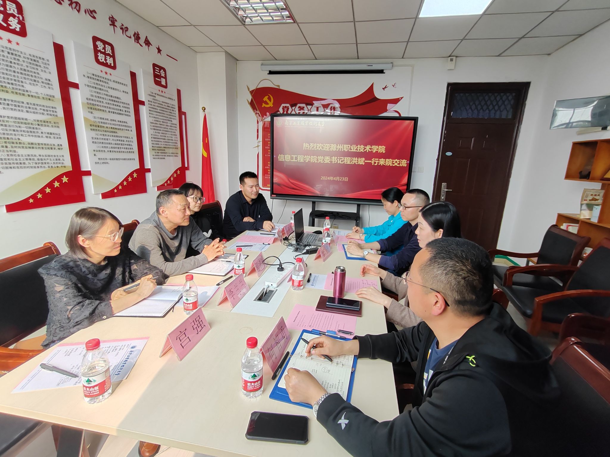 程洪斌一行就物联网专业本科和专科人才培养、国家级产教融合实训基地建设、国家级教学成果奖、国家级精品课程建设、高级人才引进、学院党建和样板支部建设等方面开展交流学习。