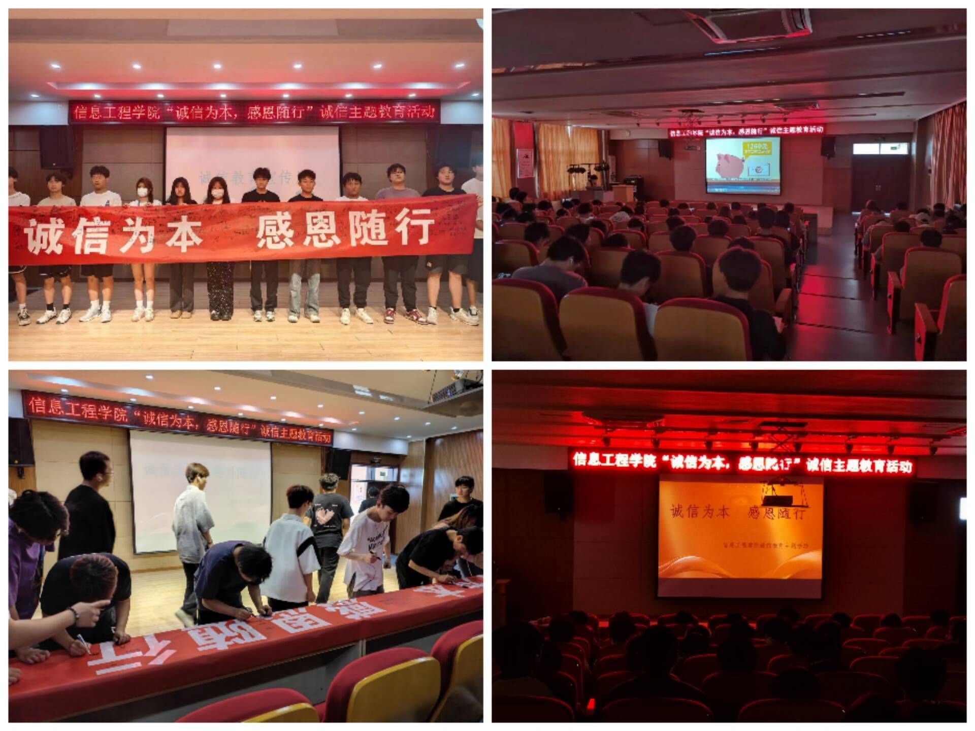 为坚持扶贫、扶志、扶智资助育人,提高学生特别是受助学生的诚信意识、责任意识、感恩意识,引导学生积极培育践行社会主义核心价值观,促进学生全面发展,信息工程学院开展了以“诚信为本,感恩随行”为主题的诚信教育系列活动。