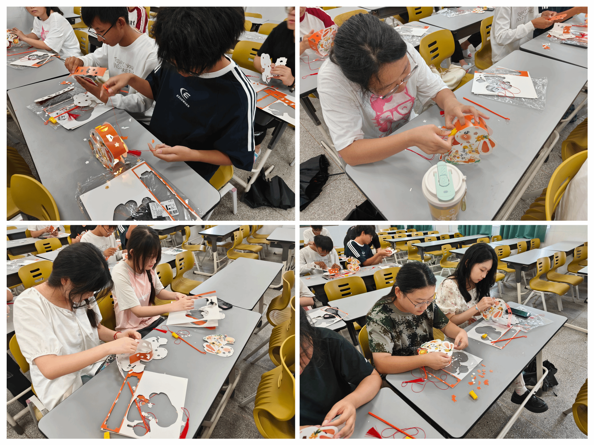 张佳乐通过PPT展示、故事分享等方式,向同学们深入介绍了中秋节的起源、发展以及丰富的文化内涵。活动中,同学们认真制作,脸上洋溢着幸福的笑容,大家相互帮助,共同协作,在实践中感受到了传统文化的魅力。这些灯笼不仅是同学们的手工作品,更是他们对中秋佳节的美好祝福与独特理解的象征。