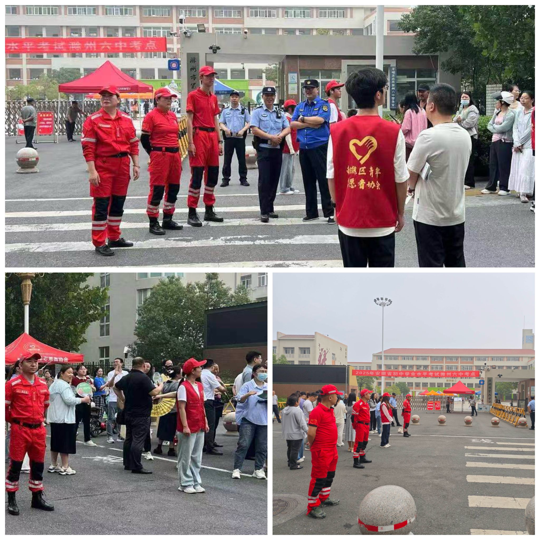 2025年中考期间,信息工程学院组织学生志愿者在滁州市青年志愿者协会救援队的带领下在滁州第六中学考点开展志愿服务,为考生保驾护航。