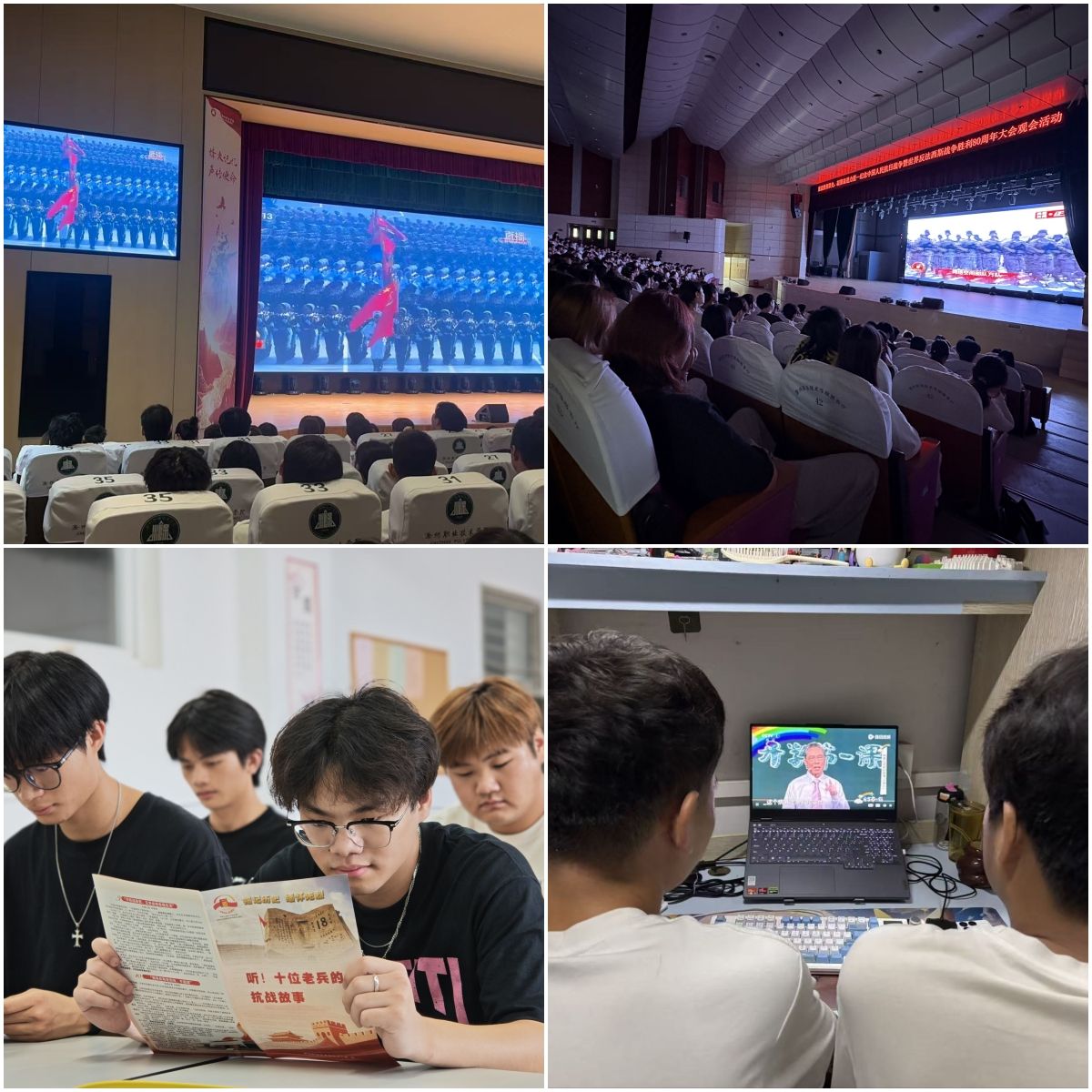 9月3日,学院通过集中组织、自行观看等多种形式组织师生观看纪念中国人民抗日战争暨世界反法西斯战争胜利80周年“九三阅兵”直播。这场阅兵不仅是一场国家盛典,更是一堂生动的爱国主义教育大课,让同学们深刻感受到了祖国的强大和军队的威严,看到了中国军队捍卫国家主权、安全、发展利益和维护世界和平的强大能力,更加坚定了自己的爱国情怀和为实现中华民族伟大复兴而努力奋斗的决心。
