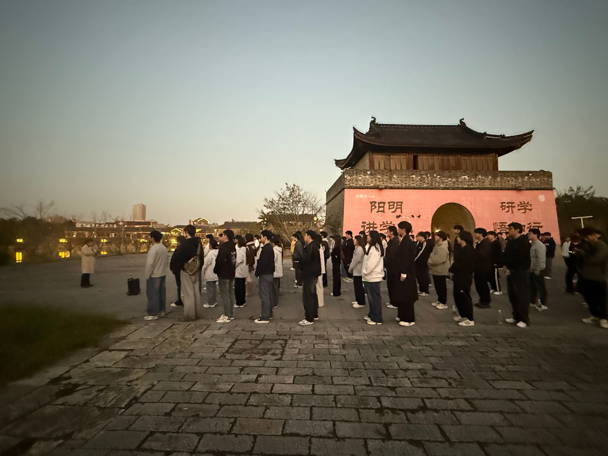 活动最后一站,师生走进充满历史底蕴的遵阳老街,参与“高校学子游遵阳·拜师阳明悟知行”文化体验活动。在瓮城广场,同学们庄重参与“王阳明拜师礼”互动,沉浸式感悟“知行合一”的哲学思想。漫步古街,大家从现代化的工业车间步入青砖黛瓦的历史街区,在古今交融中感受滁州深厚的文化魅力。