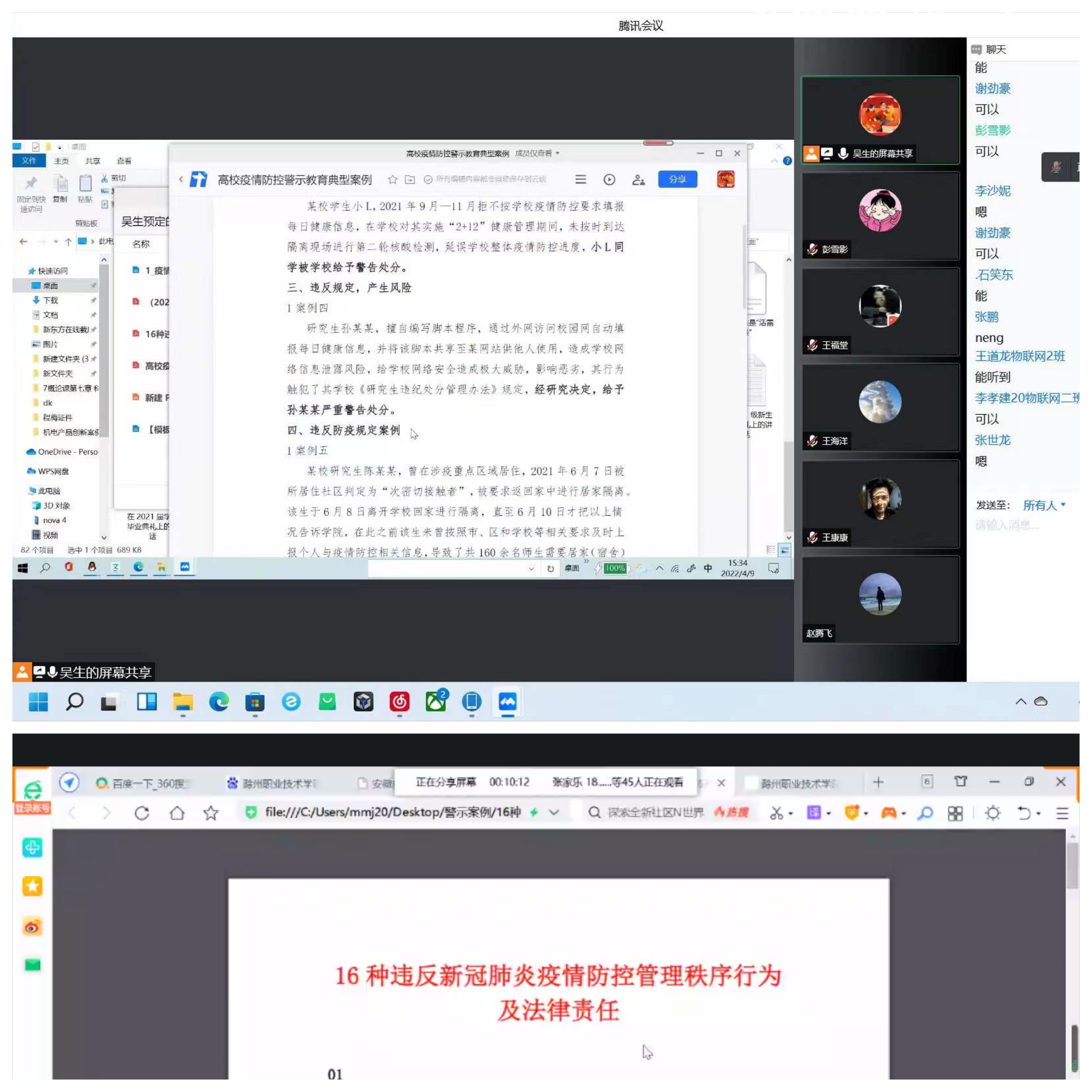 为进一步加强校园疫情防控常态化工作,贯彻落实学校关于疫情防控工作的最新精神和要求,严明纪律,强化警示教育。4月8日至9日,信息工程学院各班级组织召开了学生疫情教育主题班会,会议由各班级辅导员主持。