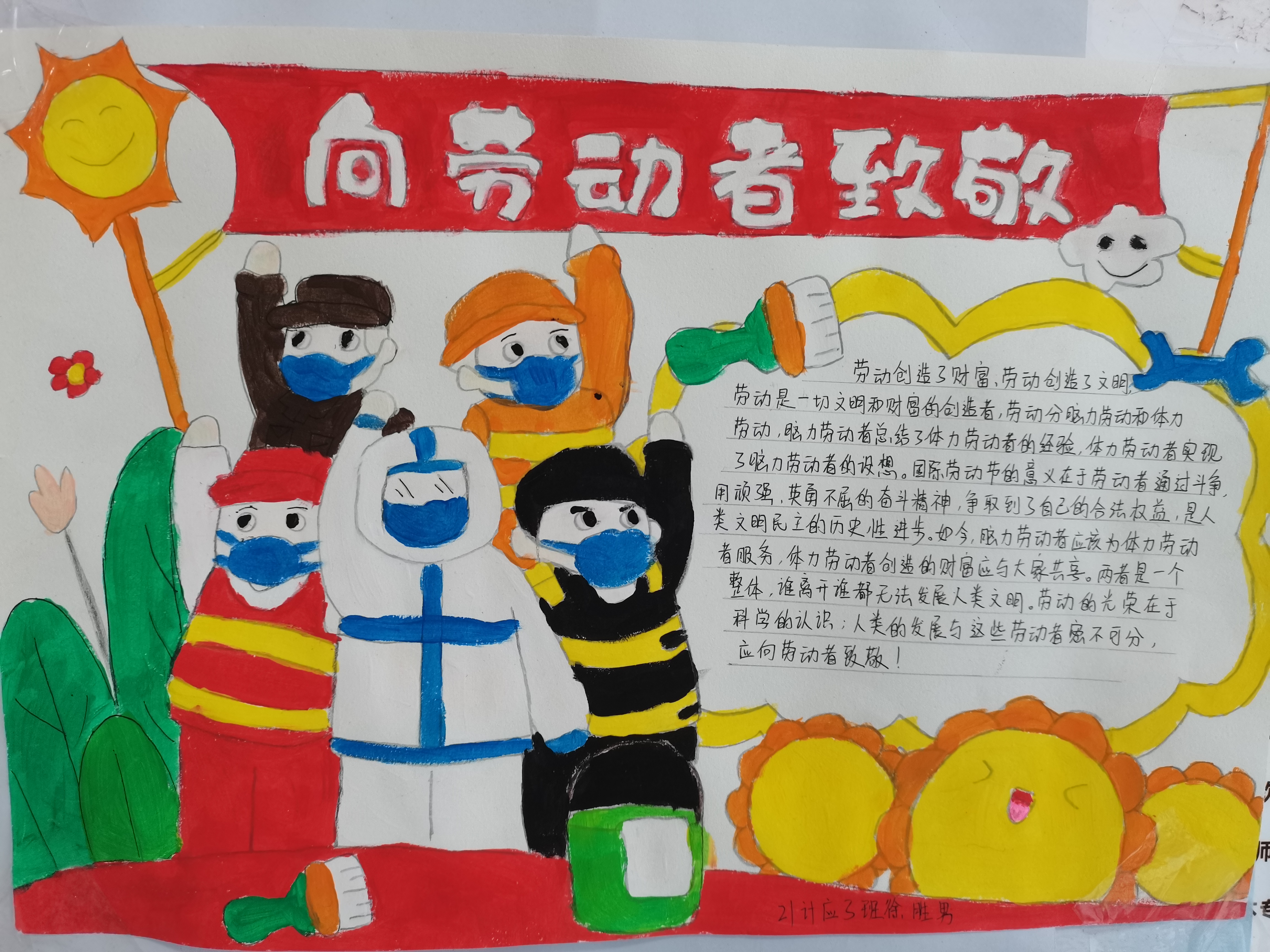 此次评选活动得到了同学们的热烈响应,在团总支副书记王乐的发动和指导下,同学们积极参与,利用课余时间,紧紧围绕“劳动最光荣”的主题,自己动手、动脑、绘画、制作出一张张生动有趣、个性鲜明、内容丰富的手抄报。参赛作品有的描述结合疫情画出了最美逆行者,有的描绘了劳动者们的身影,有的介绍“五一”节的来历,赞美劳动光荣,讴歌劳动创造幸福生活,都用最绚丽的图案和最真实的情感,展示了“劳动最光荣”的生活态度。