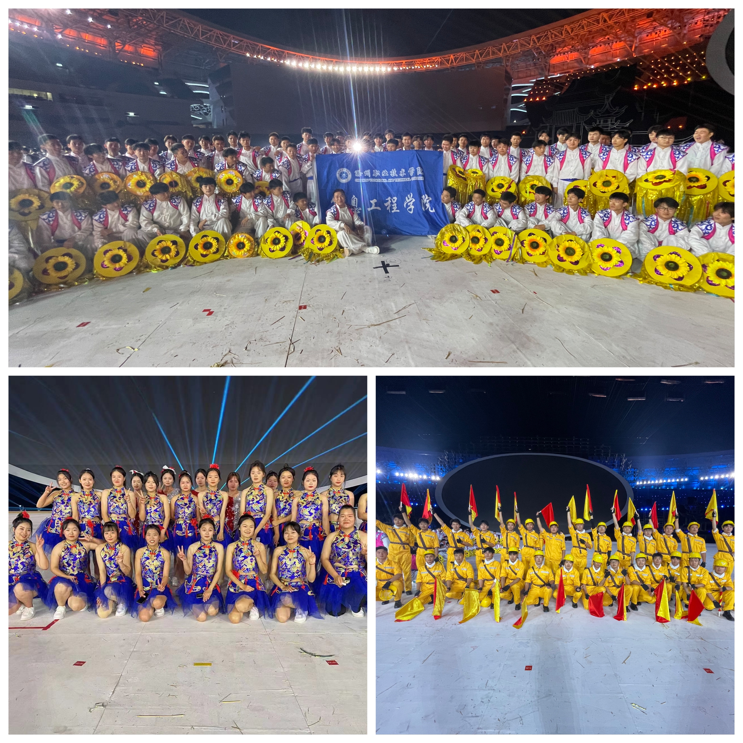 本次活动让我院学子在大舞台上绽放了自己的青春风采。此外,本次省十五运会开幕式结束后,我院还将抽调20名学生参加省残运会开幕式表演工作。