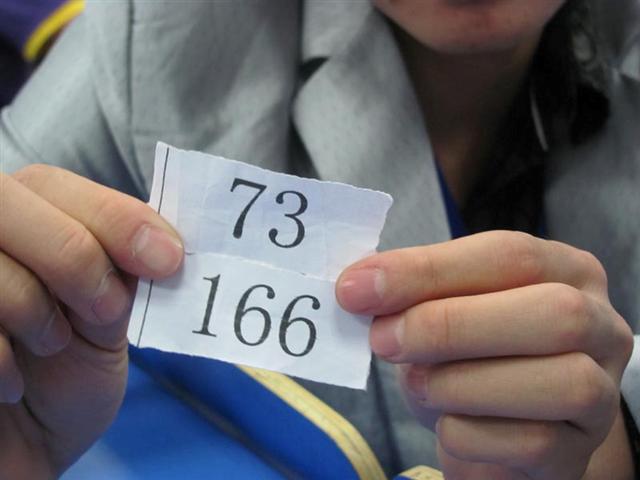 现场每个同学手中都有一张号码条,开幕式过程中共有2次抽奖,抽到对应号码的同学,都获得了由宏图三胞赞助的高清耳机一副(图为同学向摄影人员展示自己的号码)。