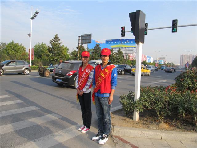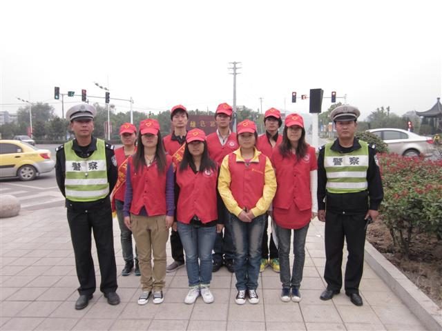 图为农歌会期间我系志愿者认真配交警进行交通文明督导