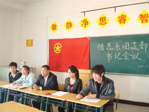 2010年10月21日中午12点半,我系团总支顺利召开团支部书记工作会议,系党总支程洪斌书记,团总支杨阳书记、团总支委员、08、09、10级团支部书记共同参加了本次大会。