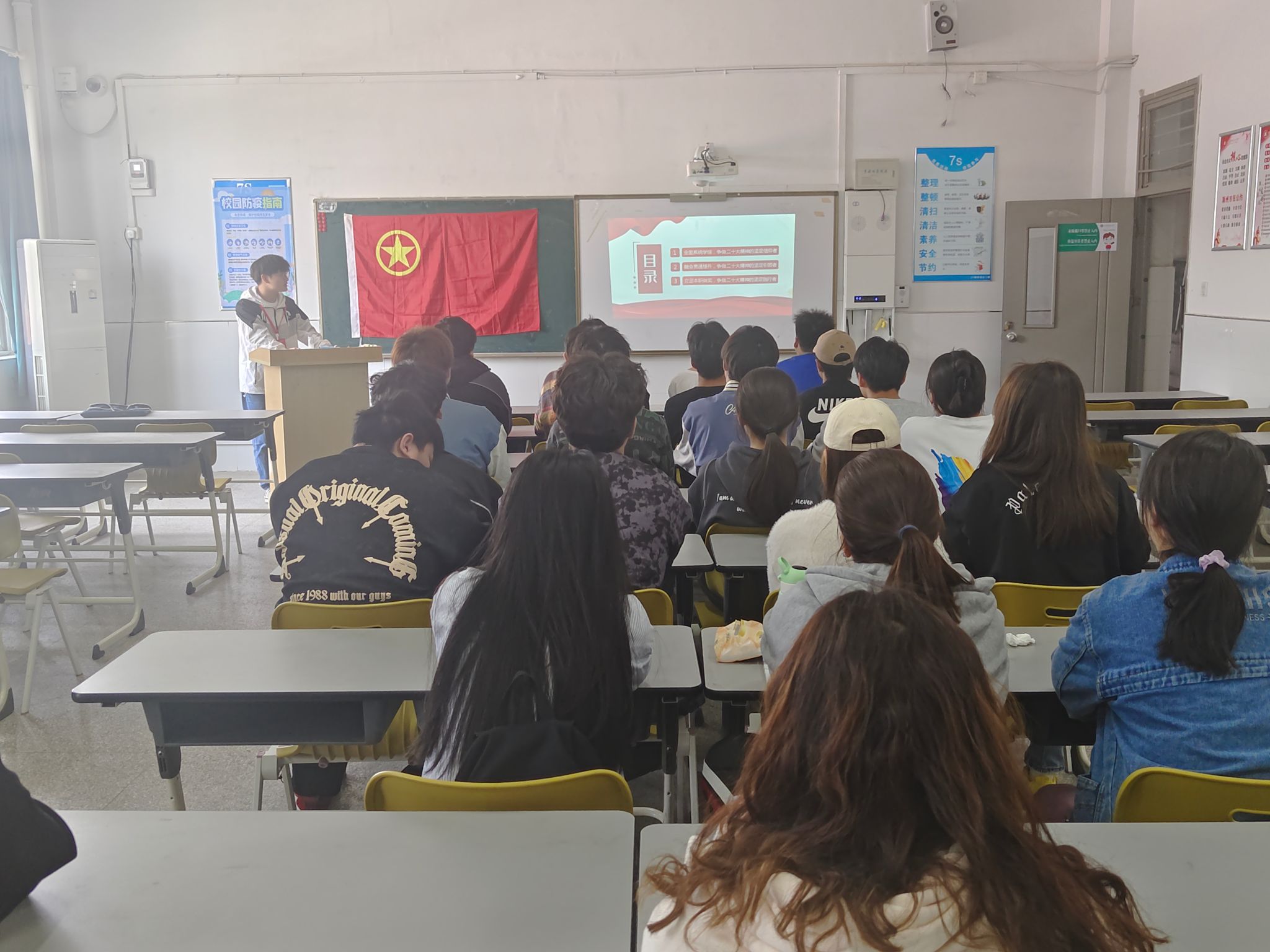 团课中,主讲人张家豪带领同学们回顾了中国共产主义青年团的历史、性质、章程、入团标准等内容。随后带领同学们解读了习近平总书记在党的二十大报告中的摘要,细致解读了中国共产党的中心任务和重要思想,勉励同学们要积极向党组织、团组织靠拢,像前辈们一样,努力争取成为中国工人阶级和时代青年先锋队中间坚韧忠贞的一份子。