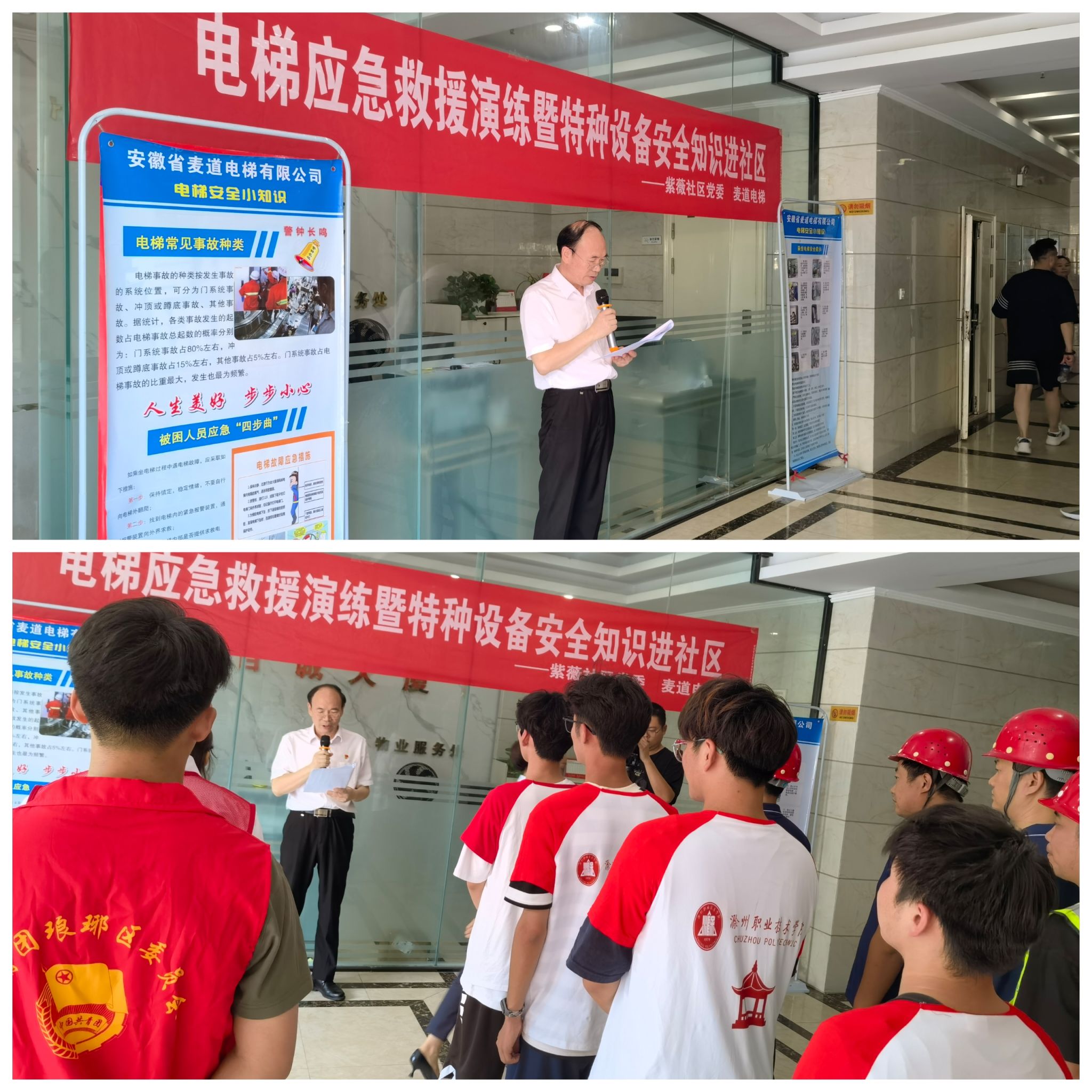 活动现场,首先由社区工作人员简要地从安全乘梯注意事项、应急救援常识等方面讲解了本次活动的目的,同时结合典型电梯事故,向在场人员和同学们科普了正确的乘梯方式和电梯事故处理方法。