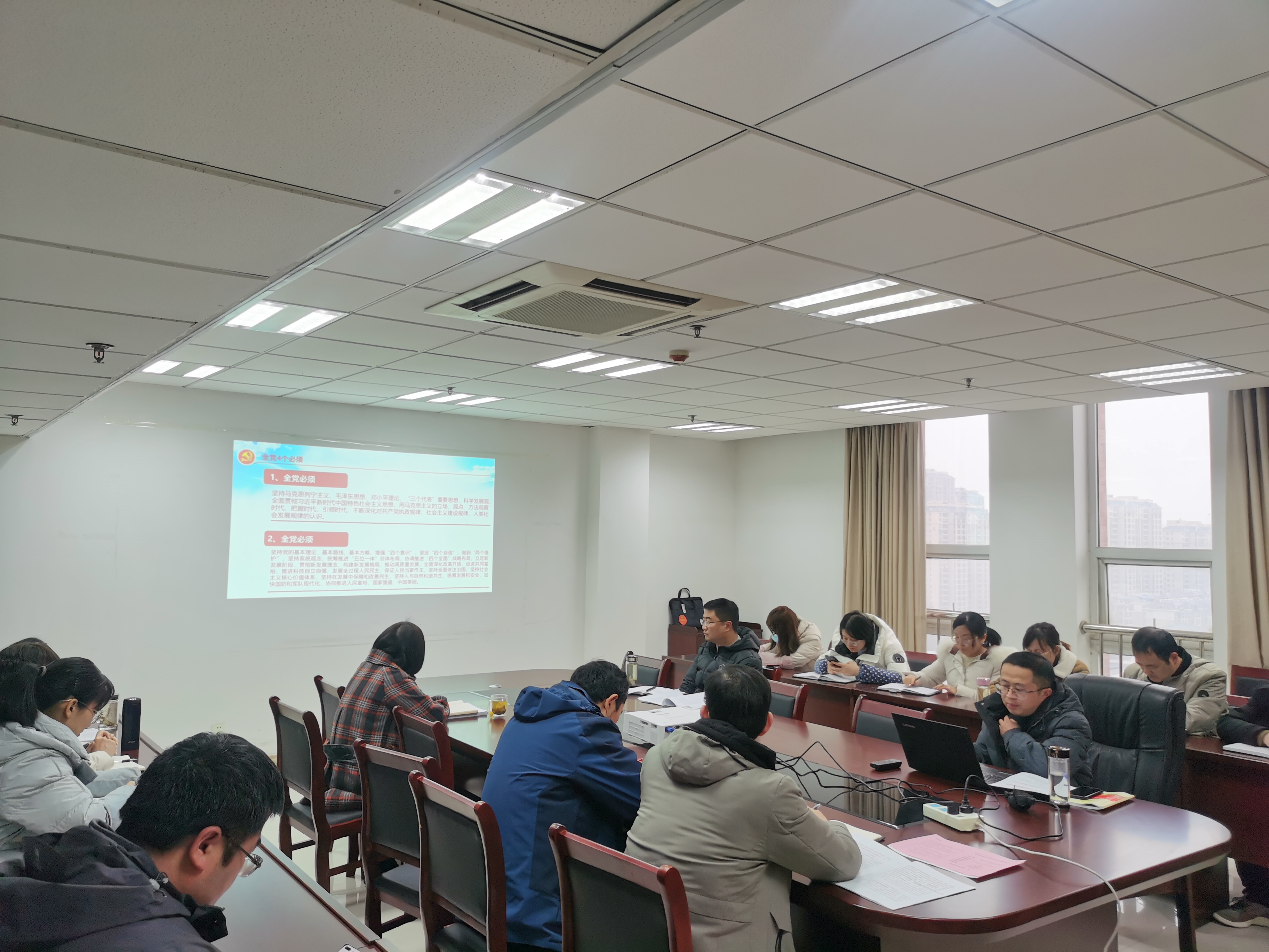 1月10日,机关九支部在综合楼1001会议室召开支部学习扩大会议,全体党员和科技处、质量管理处、信息技术中心部门老师参加了会议,会议由支部书记李爱红主持。