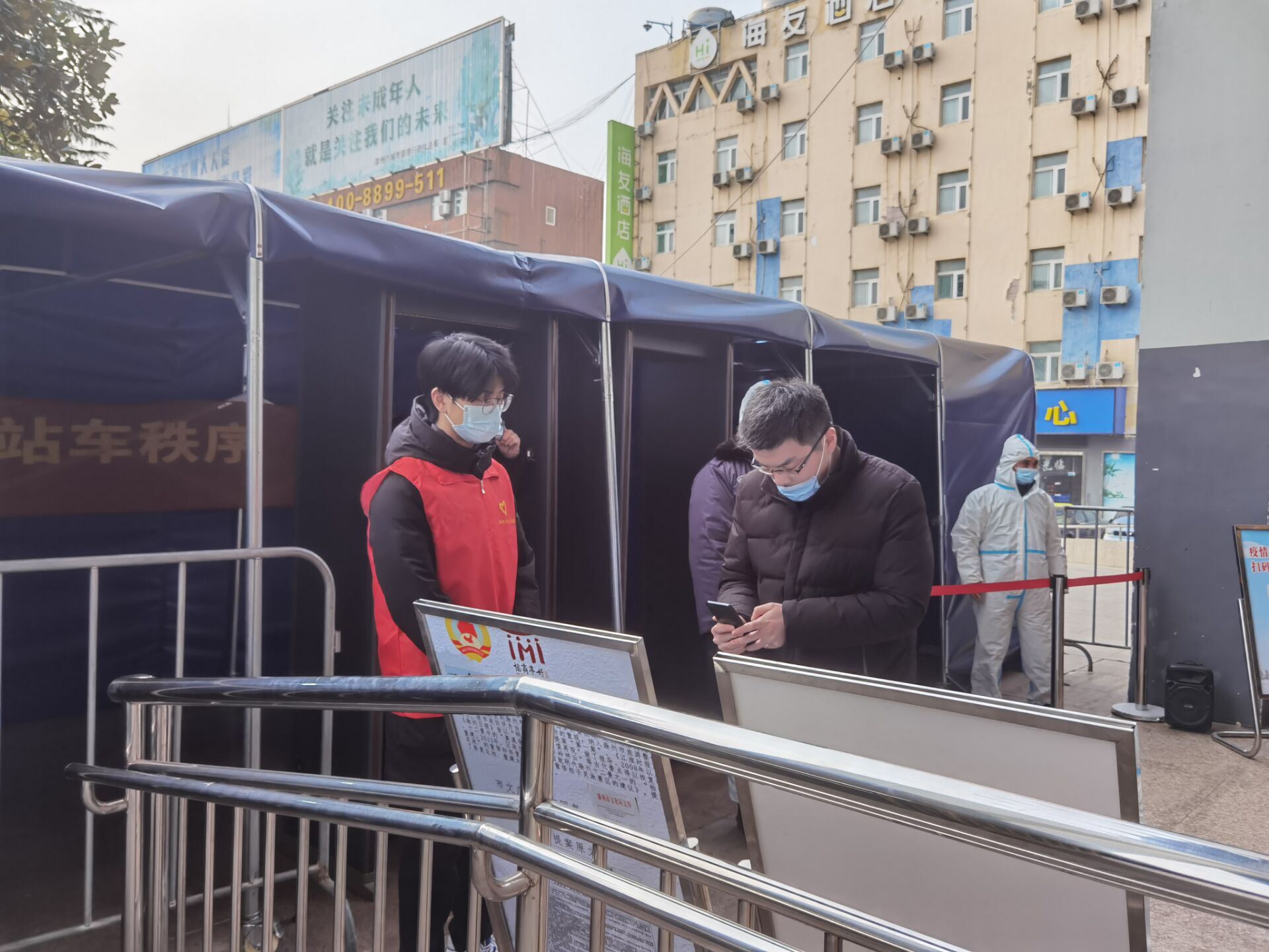 从1月17日开始到现在,志愿者们连续4天在车站广场、售票厅、检票口及旅客换乘站点开展相关服务。他们身着统一的志愿者服装,穿梭于火车站各个角落,帮助来往旅客搬运行李、购票取票,引导旅客正确进站出站,同时还提供各类咨询引导、疫情防控服务。