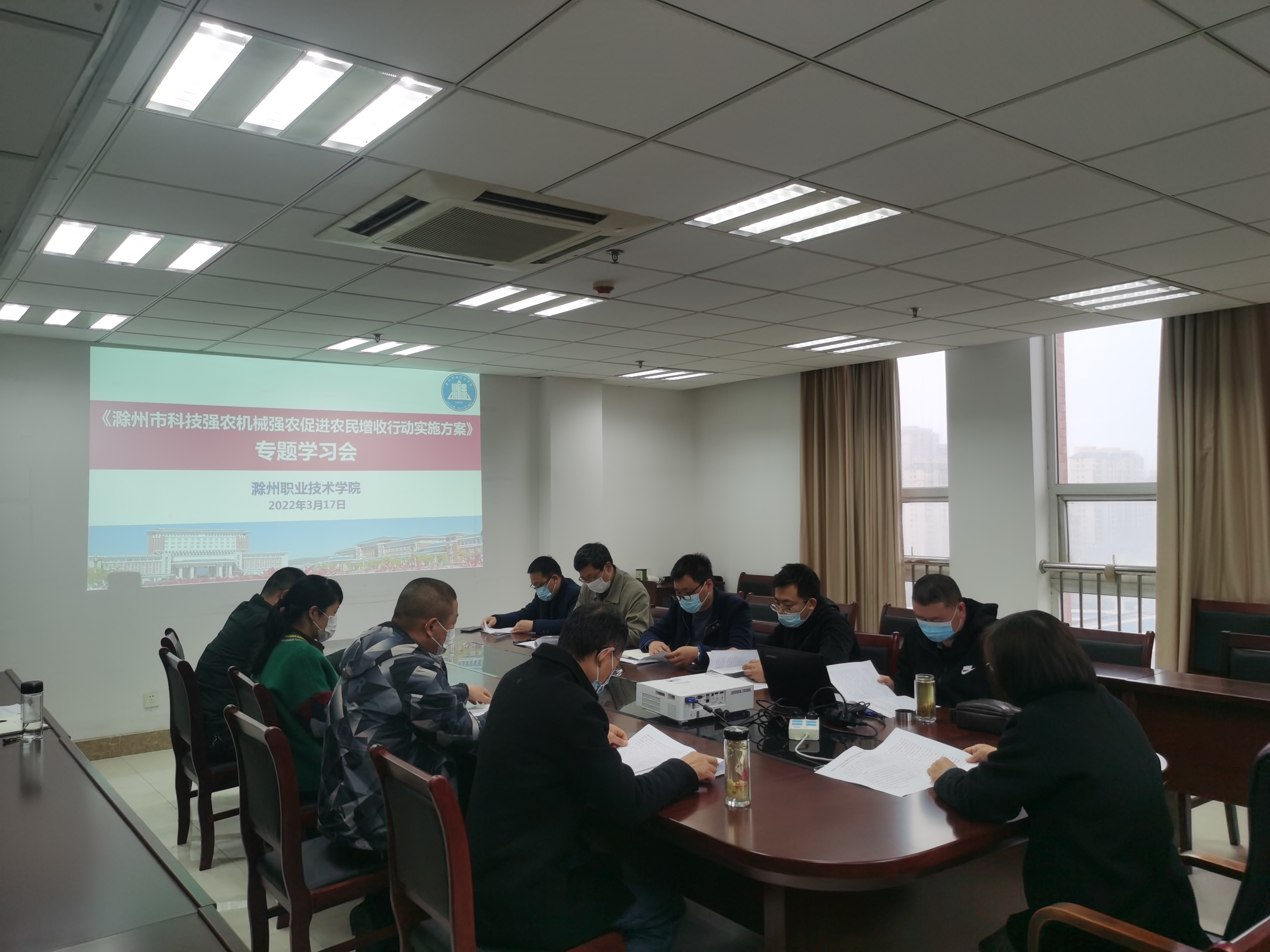 为了进一步提升学校科技服务能力,全面融入乡村振兴战略,科技处组织开展了《滁州市科技强农机械强农促进农民增收行动实施方案》(2022-2025年)(以下简称实施方案)专题学习和交流会。会议由科技处处长李爱红主持并详细解读了实施方案。教务处、电气工程学院、食品与环境工程学院和机械与汽车工程学院等教学院部负责人和相关骨干教师,科技处工作人员参加学习和交流。
