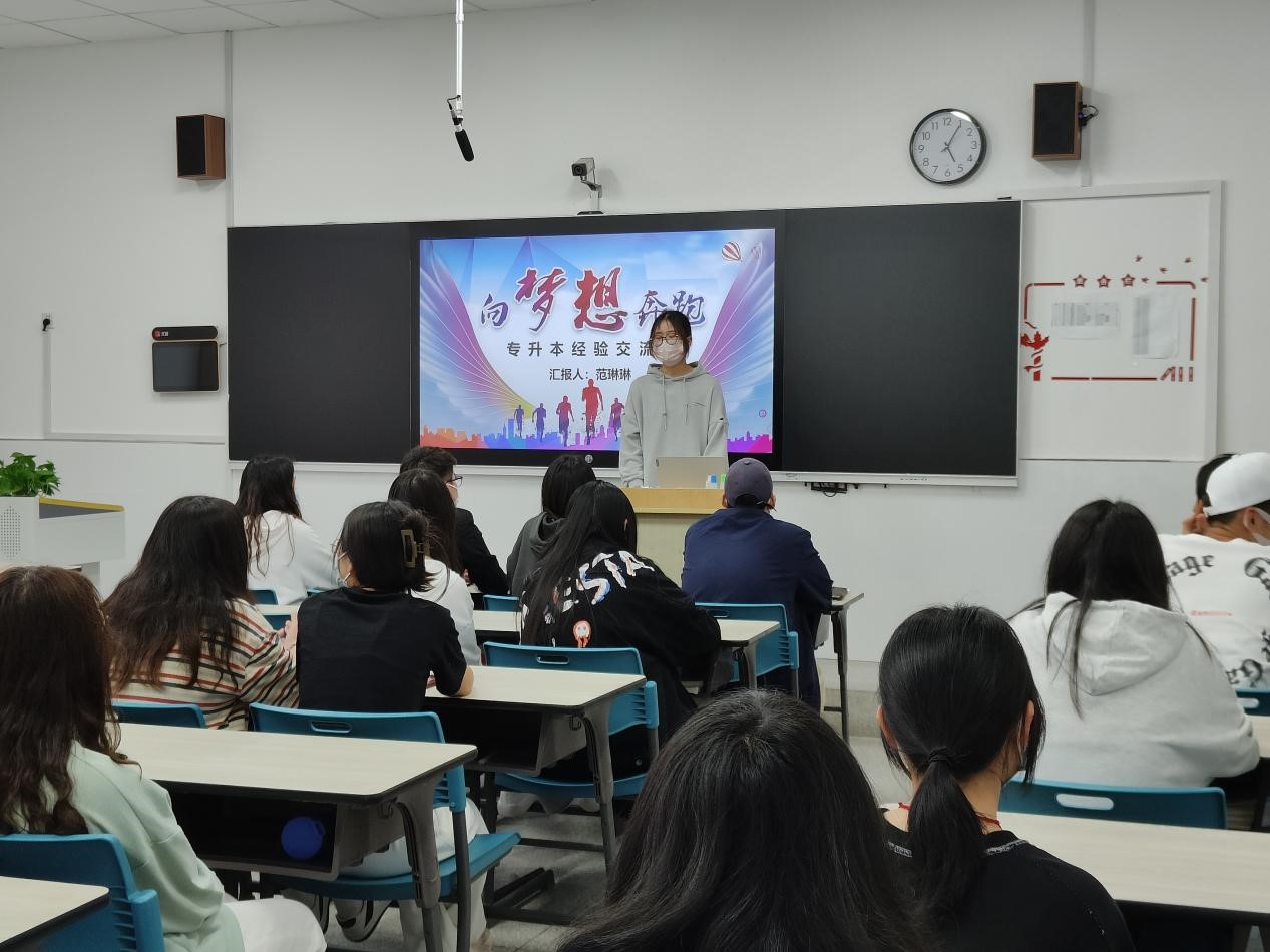 范琳琳同学2021年毕业于雷竞技raybat竞猜管理学院会计学专业,通过专升本考试考入安徽科技学院和raybat官网联合培养会计学专业。她和同学们分享了自己专科学习经历,讲述了专升本备考的学习方法与学习规划、每个科目的系统学习和备考经验、院校与专业的选择等。她鼓励同学们一定要坚定信心,早做规划,持续努力去准备。分享结束后,范琳琳就同学们提出的问题进行了交流解答。