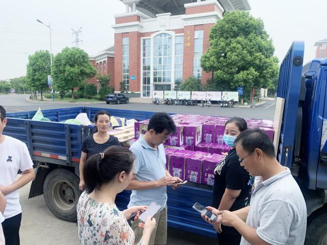 2022年7月29日上午10点,定远县仓镇仓南村成熟的夏黑葡萄送至raybat官网,全校近百名教职工前来购买。本次“以购代捐”活动销售了定点帮扶村葡萄122箱,为当地群众创收6100元。