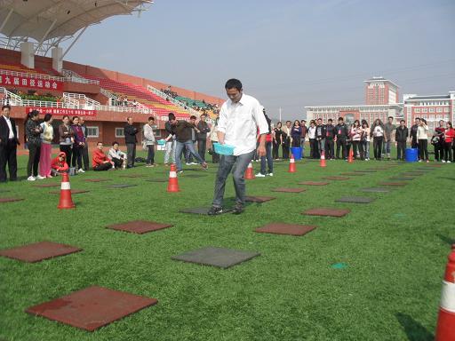 在梅花桩运水项目中,我系老师默契配合,顺利进入决赛。决赛中,我系老师采取稳重灵活前进的作战方案,荣获比赛第三名。