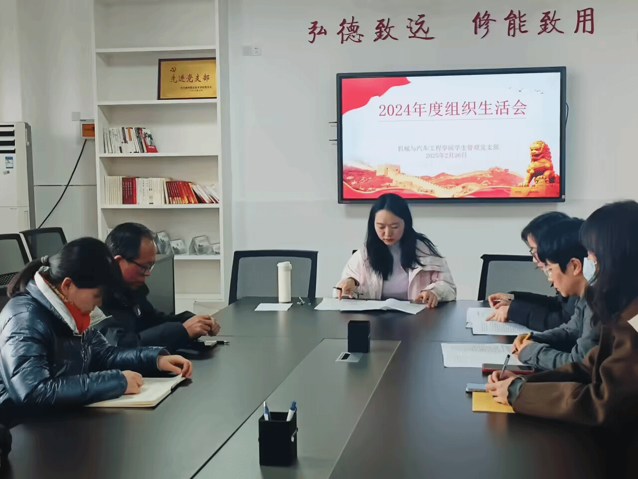 2025年2月26日,机械与汽车工程学院学生管理党支部在5210会议室召开2024年度组织生活会,会议由党支部书记倪子旭主持,党支部全体党员参会。