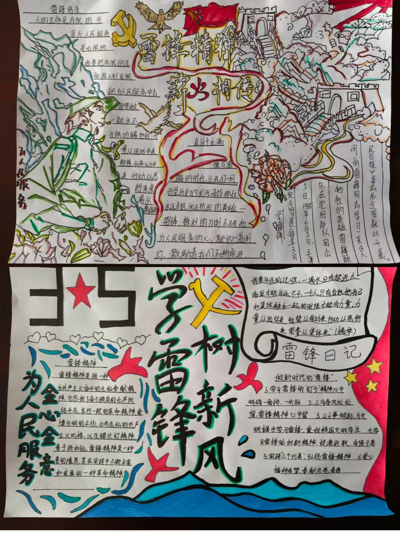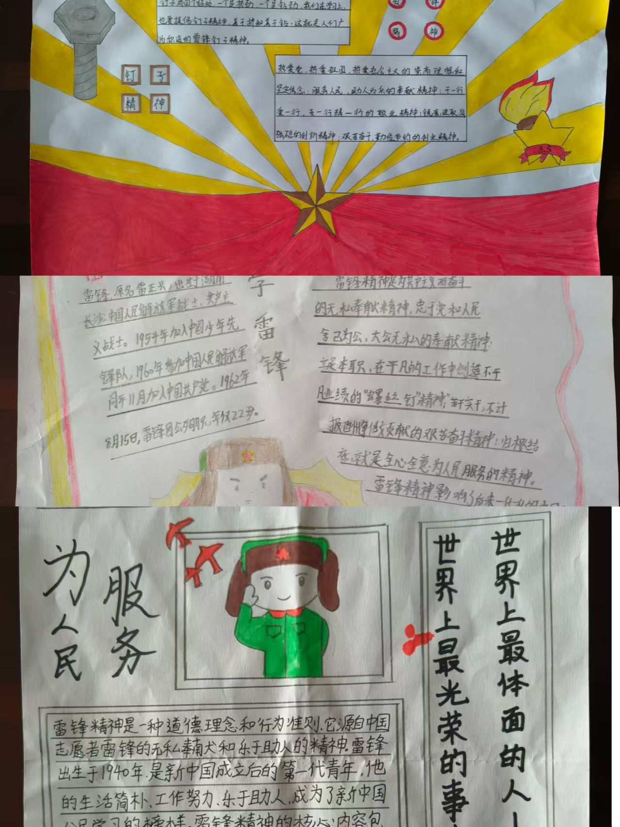 活动期间,同学们以班级为单位积极投入到手抄报的创作中。大家围绕雷锋的生平事迹、雷锋精神的内涵以及在新时代如何践行雷锋精神等内容,用手中的画笔创作出一幅幅主题鲜明、内容丰富、形式多样的手抄报。有的作品用鲜艳的色彩描绘出雷锋助人为乐的场景,有的则用文字深入阐述对雷锋精神的理解和感悟,还有的结合当下社会热点,展现新时代青年对雷锋精神的传承与发扬。经过评委们的认真评选,最终评选出了一、二、三等奖及优秀奖若干名。