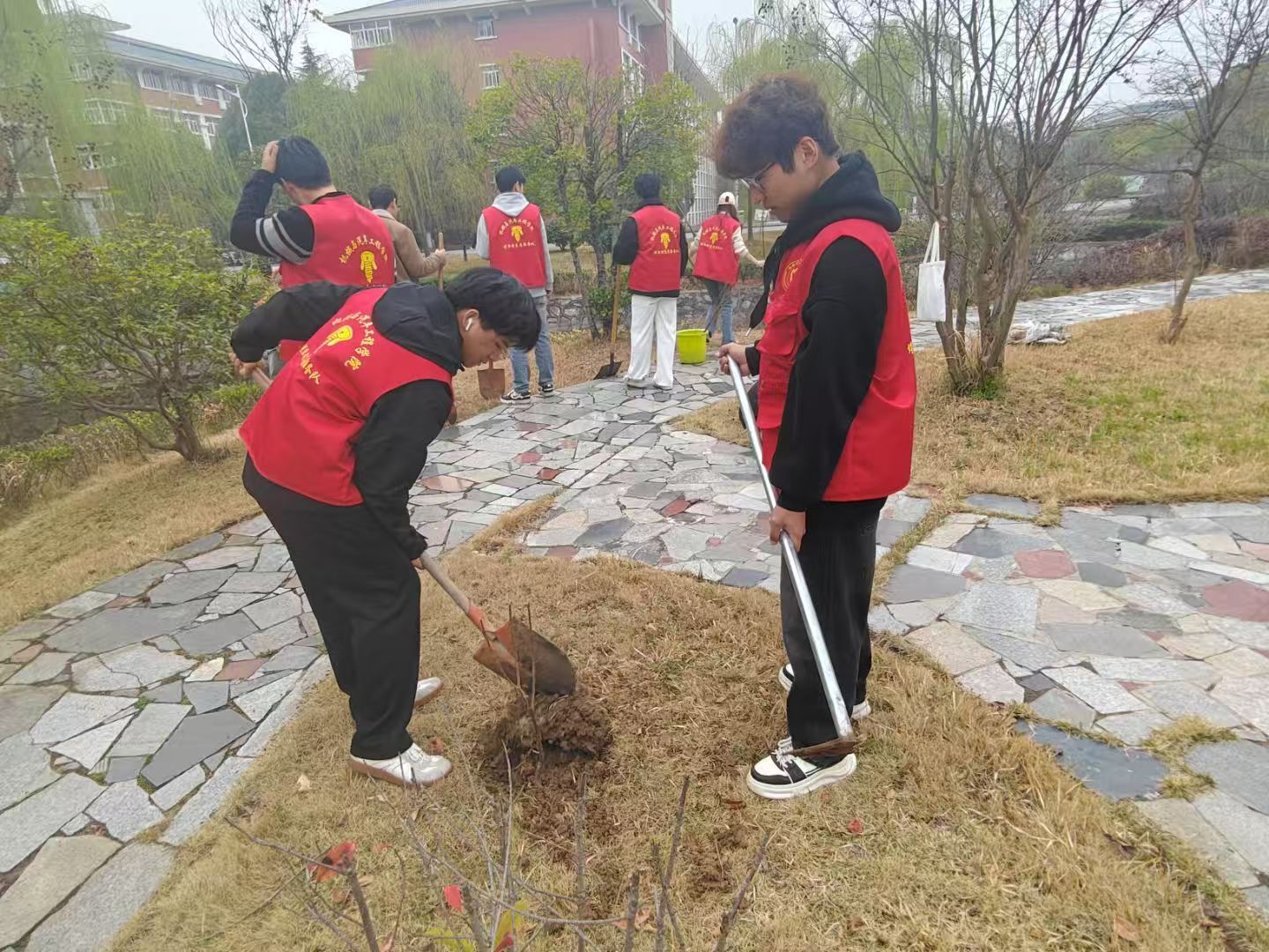 3月12日,在第48个植树节到来之际,机械与汽车工程学院团总支成员在学生宿舍13号楼西侧的池塘边开展植树活动。