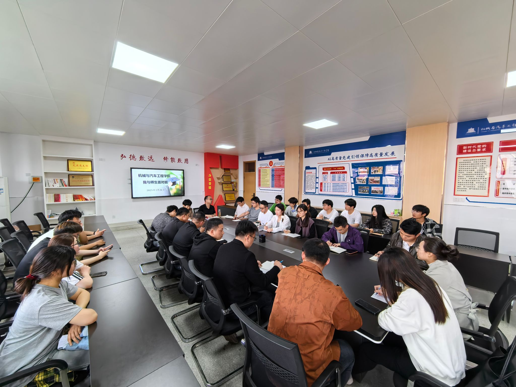 3月26日下午,机械与汽车工程学院于5210会议室召开“我与师生面对面”座谈会,院长杨章林,党总支副书记吴佳佳,近两年新入职教师和24级学生代表参会。