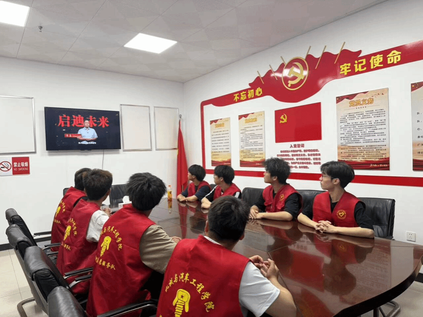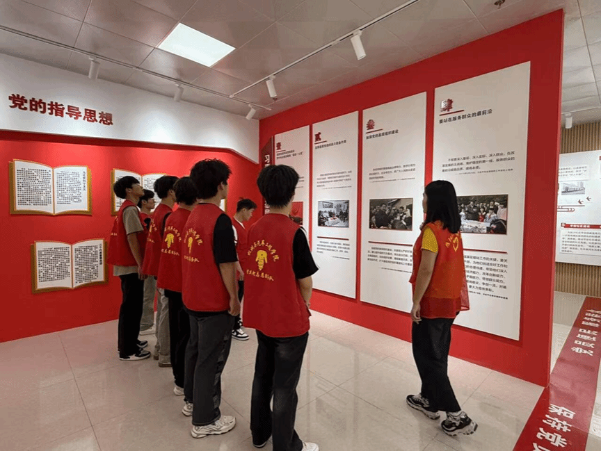 活动伊始,同学们齐聚社区会议室,共同观看了主题教育视频,在光影中感受先辈们的奋斗历程,启迪未来发展的思考。随后,大家参观了社区党建文化墙,深入学习党的百年历程、党的指导思想等内容。从新民主主义革命时期到社会主义革命和建设时期,再到改革开放阶段,墙上丰富的图文资料生动展现了党的发展脉络,让同学们对党的历史有了更深刻的认识。