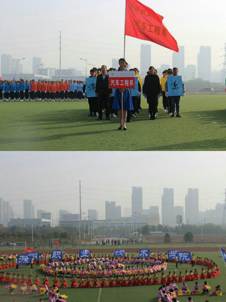 伴随着主持人的声音,98名汽车系大一新生组成的广播体操方阵来到了运动场,他们与其他各系进行了广播体操比赛,他们身着统一服装,动作整齐划一,一眼望去,彰显青春气息。他们可蹲可站,可近看也可远观,不一样的角度给你不一样的精彩。接下来是由我系150名学生参加的352余人大型表演方阵,集体表演靠的是全体同学的努力,是携手共进的结果,他们不惧风雨,不怕困难。