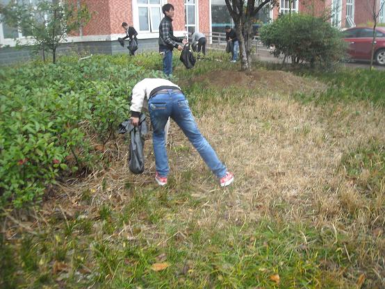 为响应学院“学雷锋志愿服务”活动号召,进一步弘扬雷锋精神,普及志愿服务理念。2012年11月21日下午,学雷锋志愿服务队启动仪式后,汽车工程系与机电工程系两个志愿服务队合力开展学雷锋志愿活动——美化校园。两个系的志愿服务队成员冒雨对校园环境进行美化,集中清洁了四号楼和五号楼周边垃圾,以实际行动向雷锋同志学习。