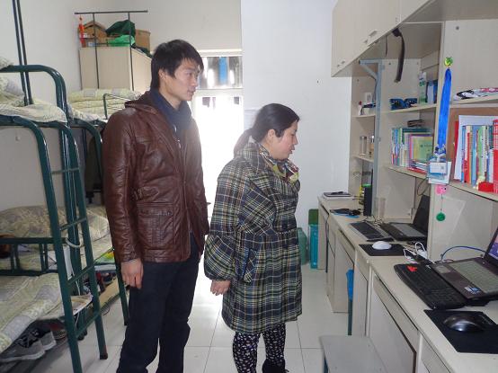 2012年11月30日中午12:00,汽车系辅导员赵晶丽、吴佳佳、茆怡娟、王素珍和系学生会的一些学干,一同来到学生宿舍楼进行查看。