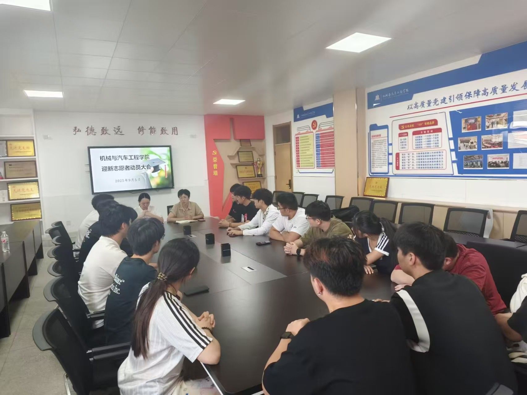 为确保2025级新生报到工作顺利开展,为新生及家长提供贴心服务,充分发挥志愿者服务在迎新工作中的关键作用,9月5日,机械与汽车工程学院于5210会议室召开迎新志愿者动员大会。院党总支副书记吴佳佳、院团总支书记倪子旭及全体迎新志愿者参与此次大会。