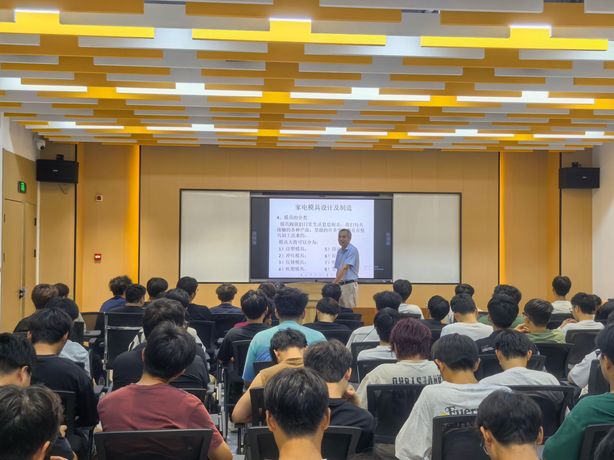 “机械专家”王和升向各位同学介绍了家电模具在现代制造业中的关键地位,强调模具作为“工业之母”,对家电产品的质量、生产效率及创新发展起着决定性作用。讲座过程中,既有实际案例,又介绍了当前主流制造工艺在实际应用中的技巧,让同学们对制造业的发展方向有了更清晰的认识。面对同学们提出的模具设计创新、制造工艺难题以及行业发展前景等诸多问题,王和升工程师都耐心解答,现场交流氛围十分活跃。