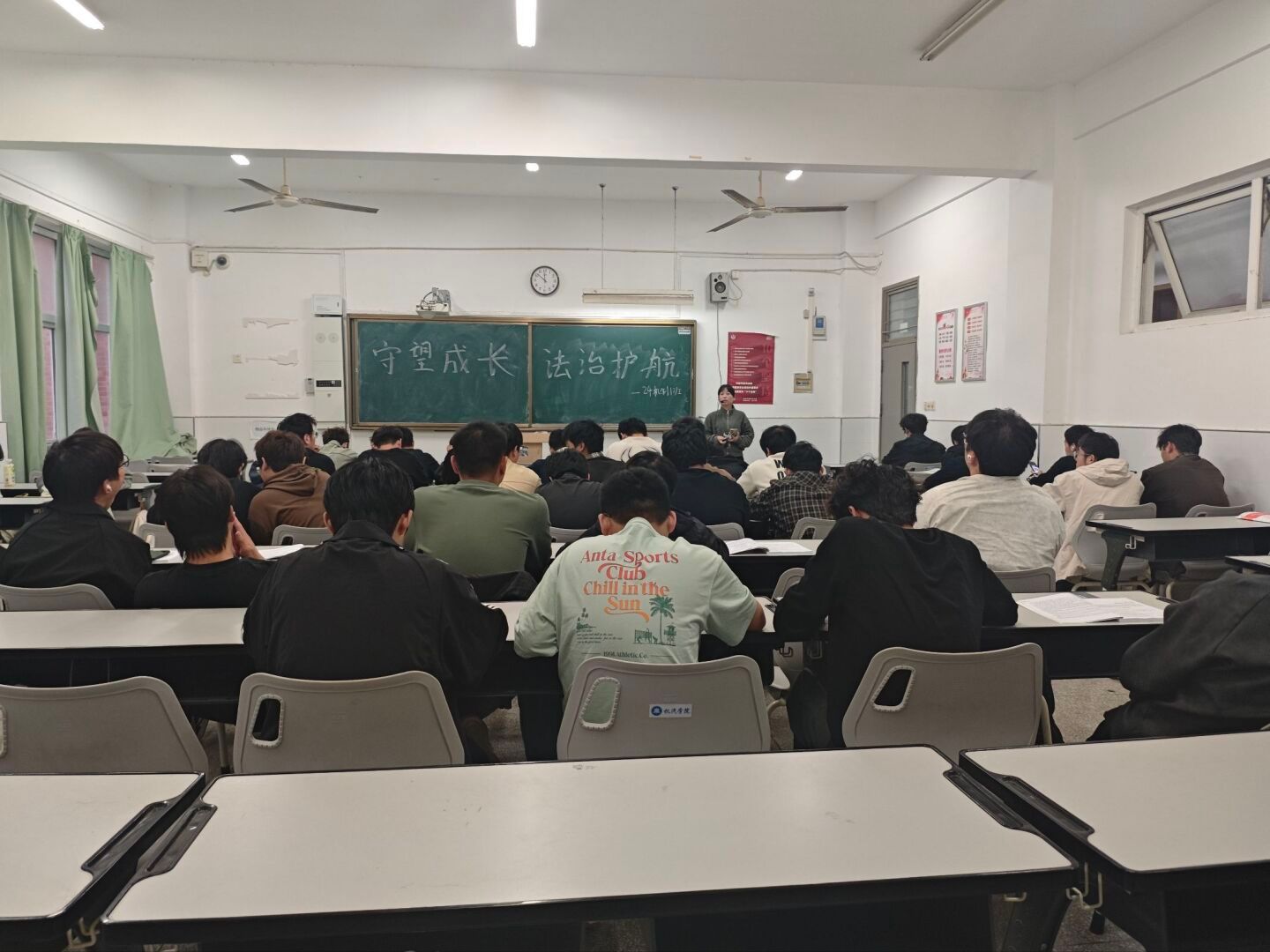 各班辅导员结合学生的成长特点与校园生活实际召开班会。有些班级结合机械、汽车专业相关案例展开讲解:从校园内常见的知识产权保护,到未来职场中可能涉及的机械专利纠纷、汽车行业法规等。有些班级聚焦校园常见的法治与安全问题:从防范电信网络诈骗、杜绝校园贷等金融风险,到解读打架斗殴等行为的法律后果。部分班级还通过播放法治教育短片、微电影等形式,用贴近学生学习生活的实例,让抽象的法律知识变得生动易懂,进一步强化学生法治思维。