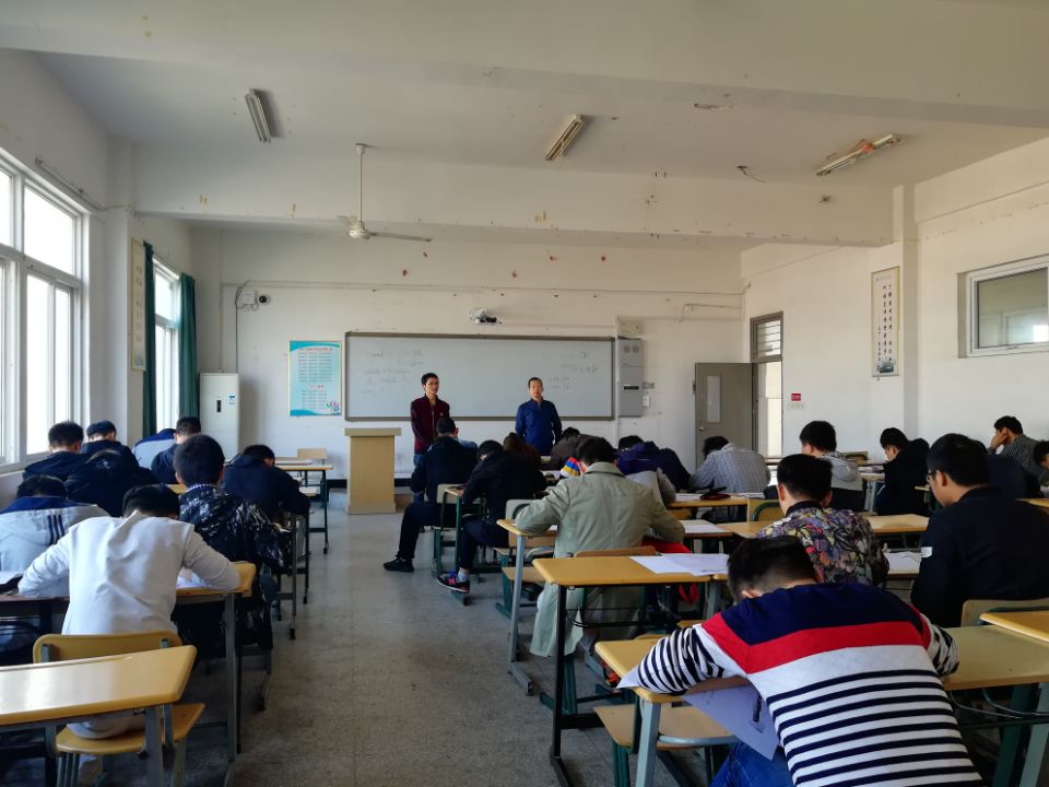 本竞赛项目的负责人杨苗苗老师和杨军老师宣讲了本次考试规则及注意事项,并清晰讲明了本次竞赛的公开、公正性。此次比赛主要从标题栏绘制、图形布局、图形绘制、标注、技术要求等方面进行考核。竞赛现场,每位同学都集中精力、全神贯注,积极投入到紧张的制图当中。