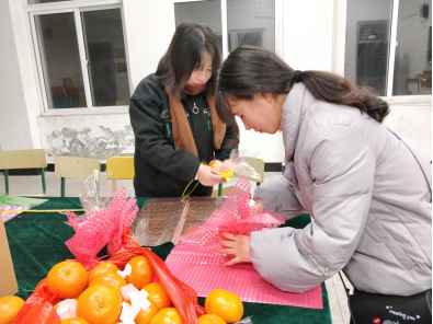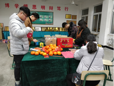 活动中班干们将几大箱苹果精心包装好,并在每一个苹果上都写下了深深地祝福,将这些代表平安与快乐的祝福送到每一位同学的手中,希望他们在新的一年里有新的起点,新的方向,向着目标永往直前比翼奔进。