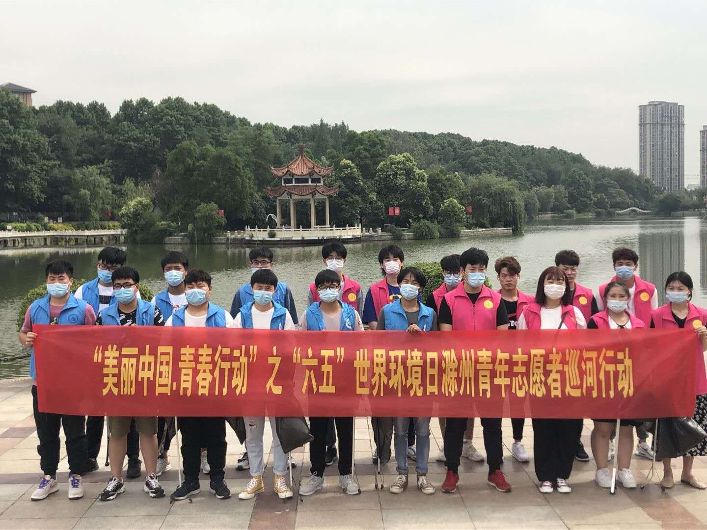 2020年6月5日上午,机械与汽车工程学院党员教师何凯带领18级入党积极分子在滁州市琅琊区北湖公园和南湖公园开展“美丽中国,青春行动”之世界环境日青年志愿者巡河专项行动,用实际行动美化了公园的环境。