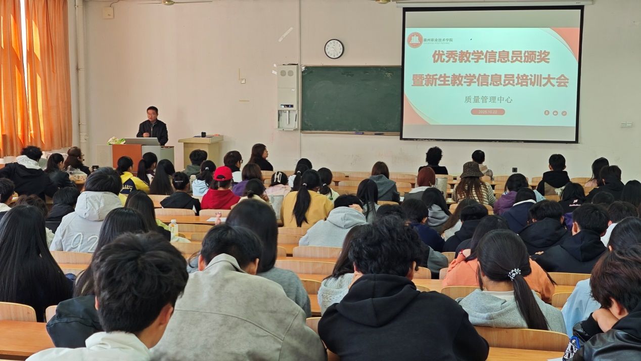 10月22日中午,质量管理中心在南阶103教室召开了23、24级优秀学生教学信息员表彰暨25级新生教学信息员培训大会。质量管理中心主任吴昌雨、教学督导科全体专职教学督导员以及17名优秀教学信息员代表、123名新生教学信息员参加了会议。