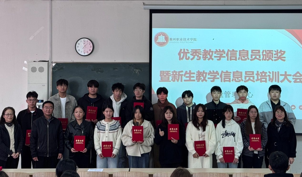 会上,陶会平老师宣读了《关于表彰2024-2025学年度优秀学生教学信息员的通报》(质函〔2025〕6号),吴昌雨为23级、24级优秀信息员代表颁发了获奖证书并合影留念。