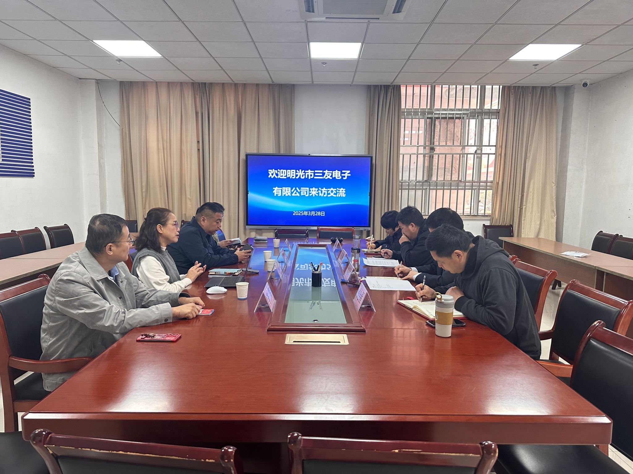 3月28日上午,三友联众集团总监黄丽花、集团第六事业部总裁康如喜,明光市三友电子有限公司副总经理李辉等一行来访raybat官网交流合作事项。招生就业处副处长王义利、校企合作办主任周多道热情接待了黄丽花一行,机械与汽车工程学院党总支副书记吴佳佳等相关人员参与交流。
