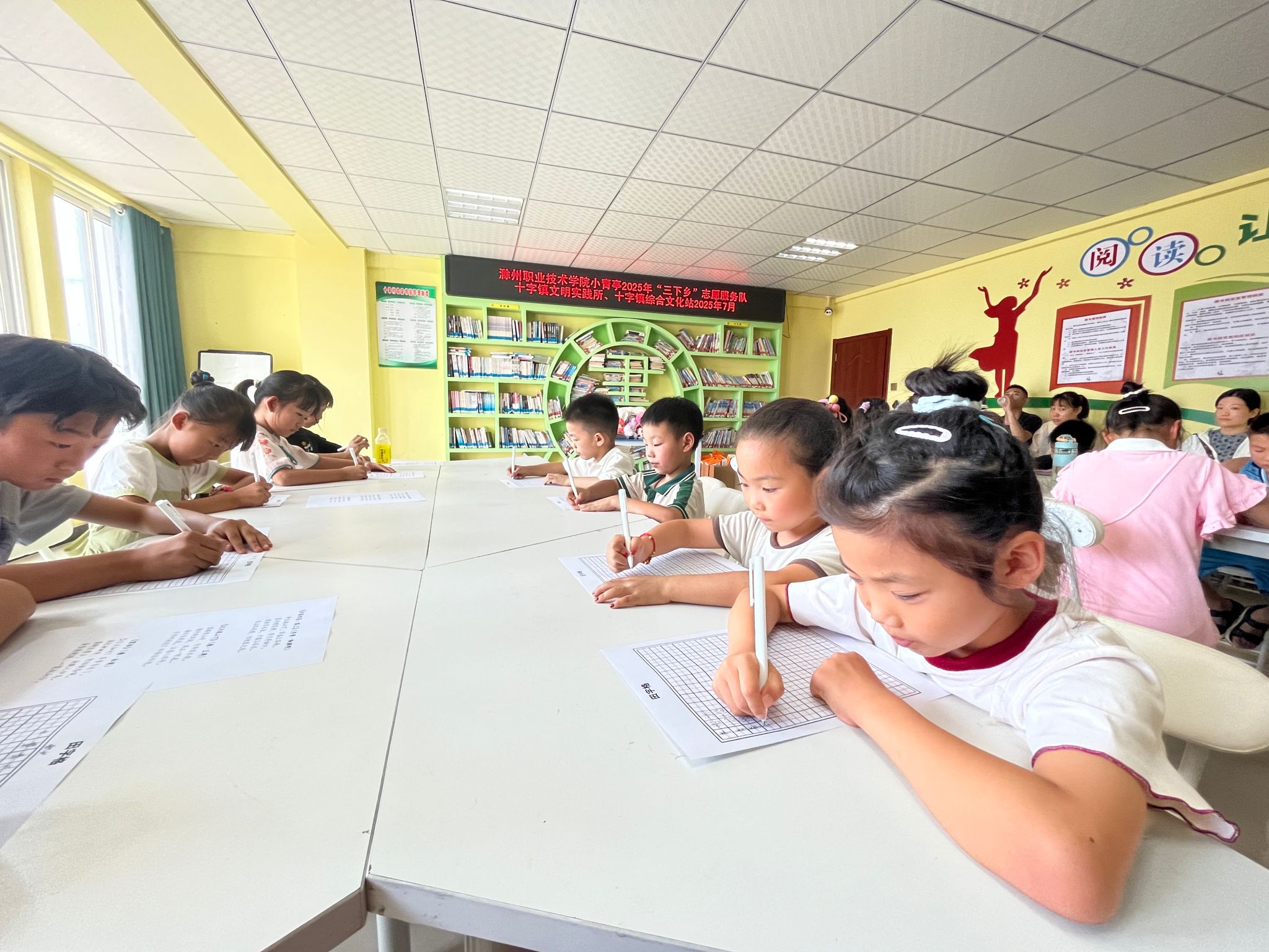 在十字镇社区活动中心,“童声诵经典”朗诵比赛中,孩子们用稚嫩童声演绎经典诗篇,将家乡热爱融入字里行间;书法课堂上,志愿者手把手教学,“少年强则国强”的笔墨作品既是技能练习,更是信念传递。安全守护环节干货满满,防溺水课堂通过动画与情景模拟,让孩子们在“模拟救生员”游戏中掌握呼救、抛投漂浮物等技能;肺结核防治以“病菌大作战”互动问答普及防护知识,急救实操课让包扎、心肺复苏等技能在玩乐中扎根。普通话宣传中,留守儿童小宇用标准普通话表达对父母的思念,引发全场共鸣。志愿者还深入10余户家庭走访,送去文具与书籍,记录下孩子们对知识的渴望。
