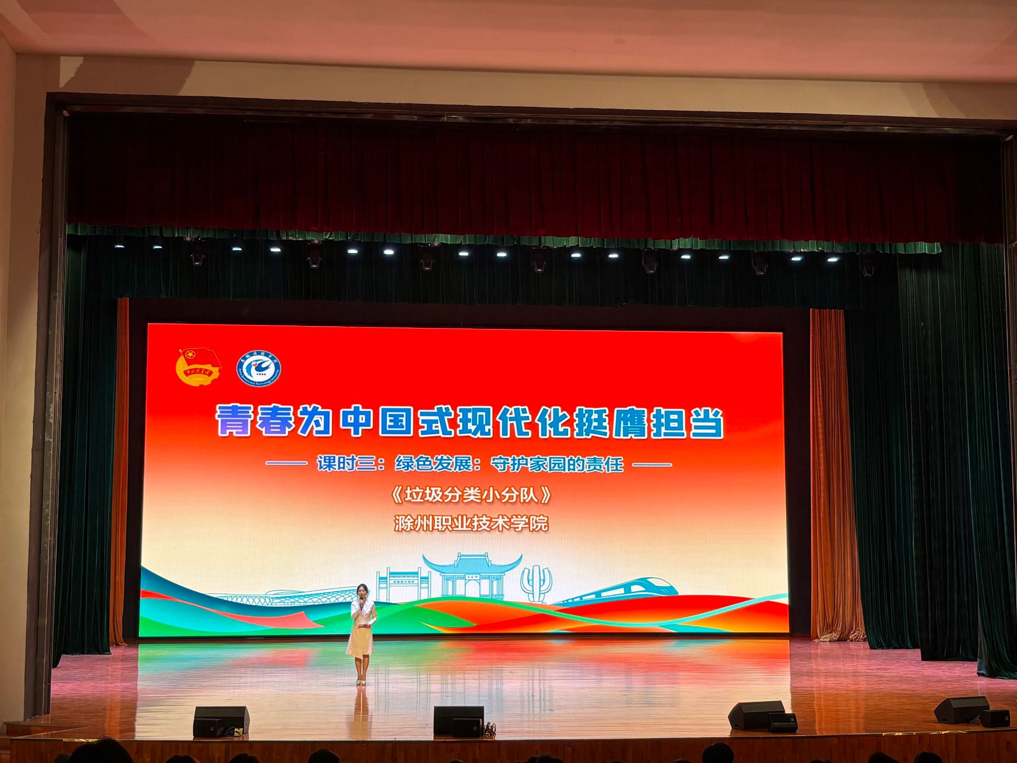 6月17日下午,由共青团滁州市委员会等单位主办,多所高校及相关组织承办的“青春为中国式现代化挺膺担当——滁州市2025年主题青春思政课”在安徽科技学院滁州校区知行礼堂圆满举行。雷竞技raybat竞猜作为承办单位之一,积极参与其中,以精彩的节目展现了青年学子的担当与风采。
